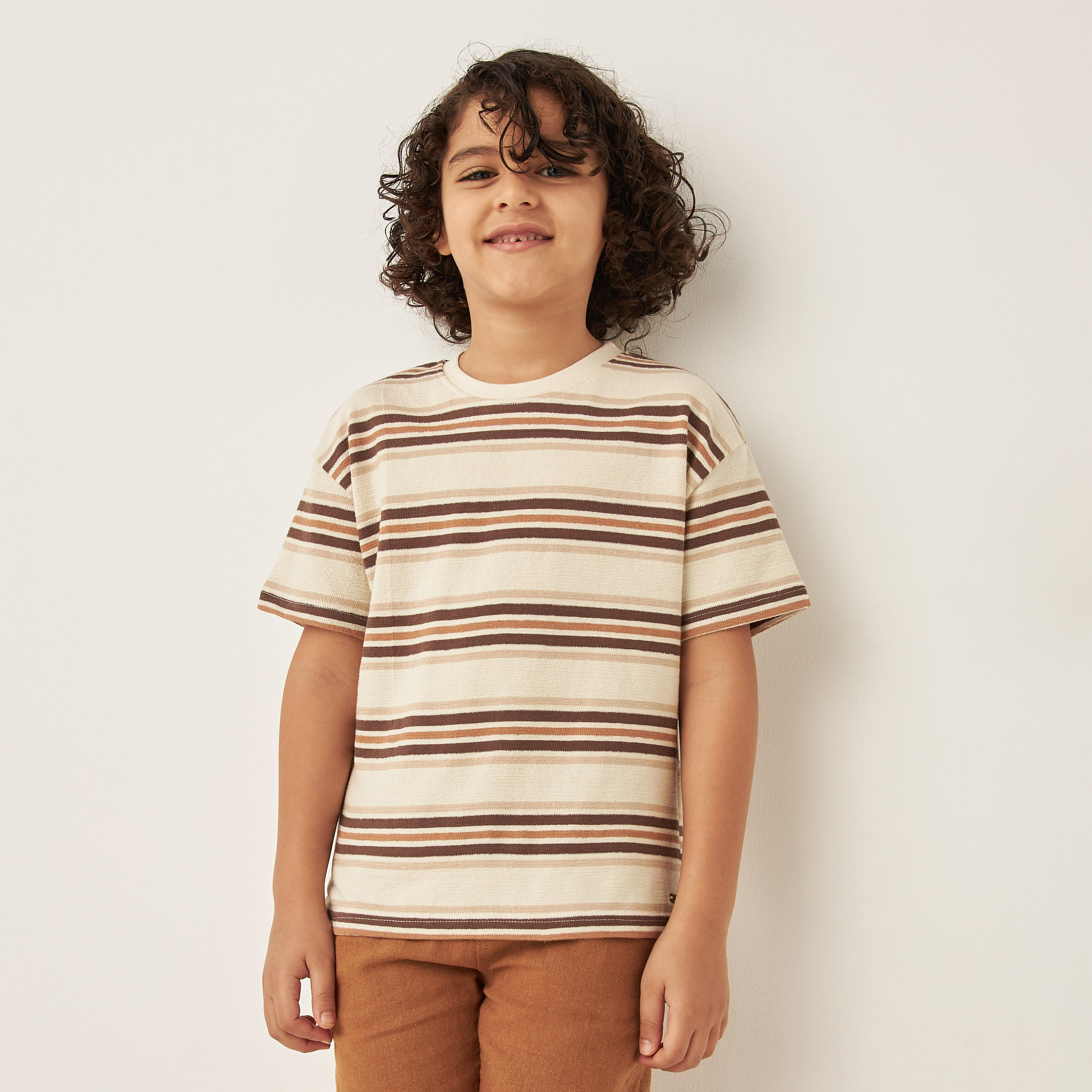 تيشيرت مخطط بياقة ضيقة وأكمام قصيرة من إليجو