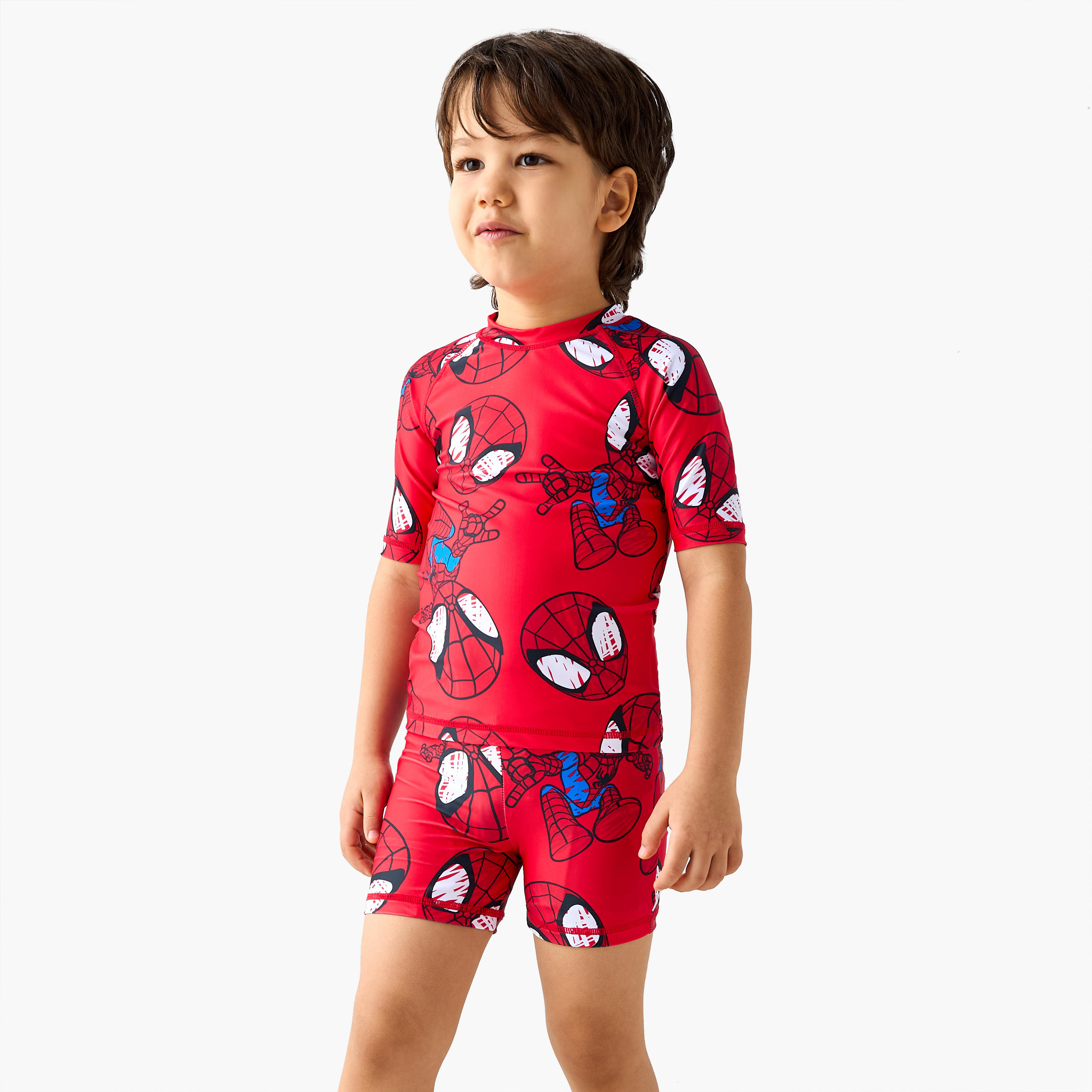 طقم تيشيرت وشورت سباحة بطبعات سبايدر مان