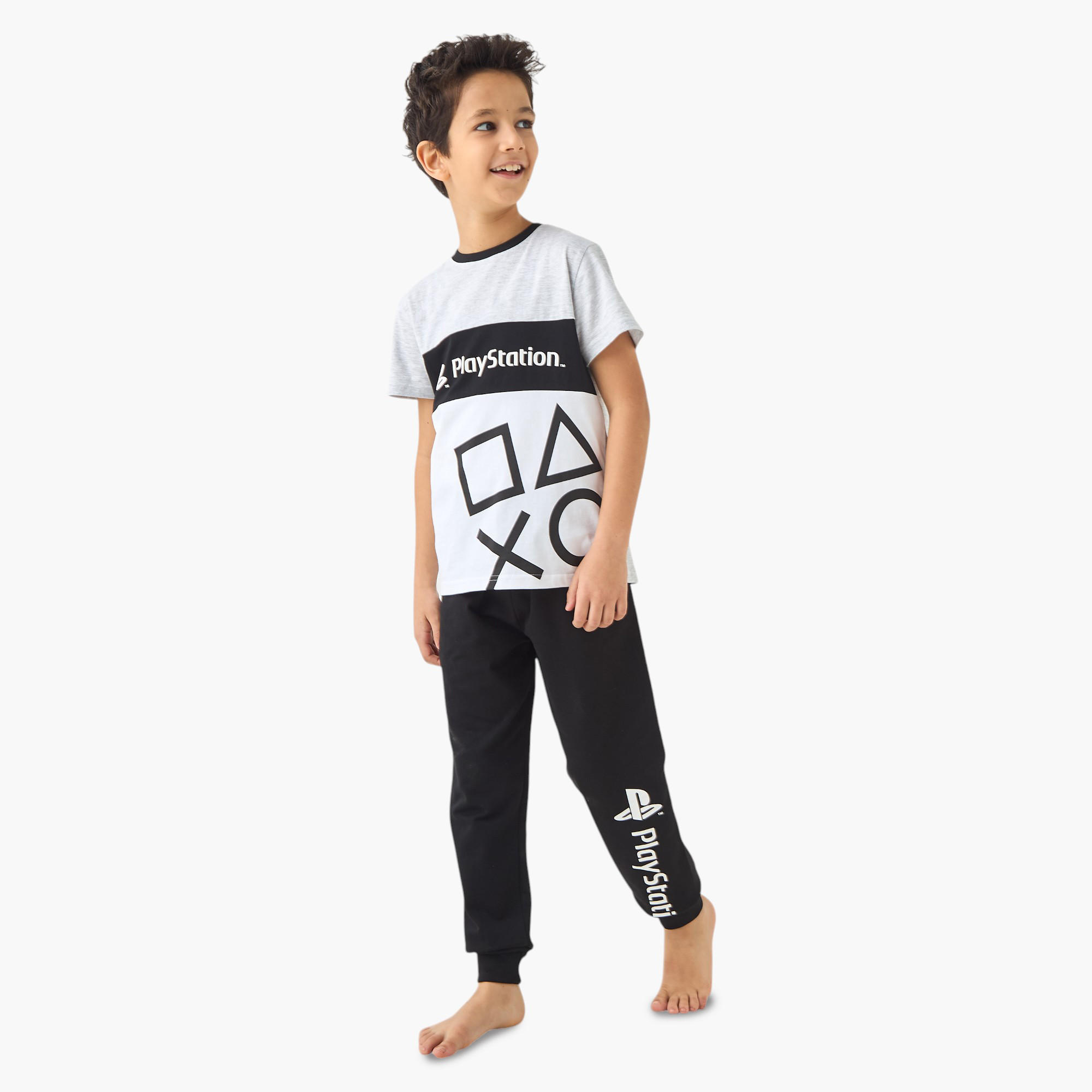 طقم تيشيرت وبنطلون بيجاما بطبعات شعار