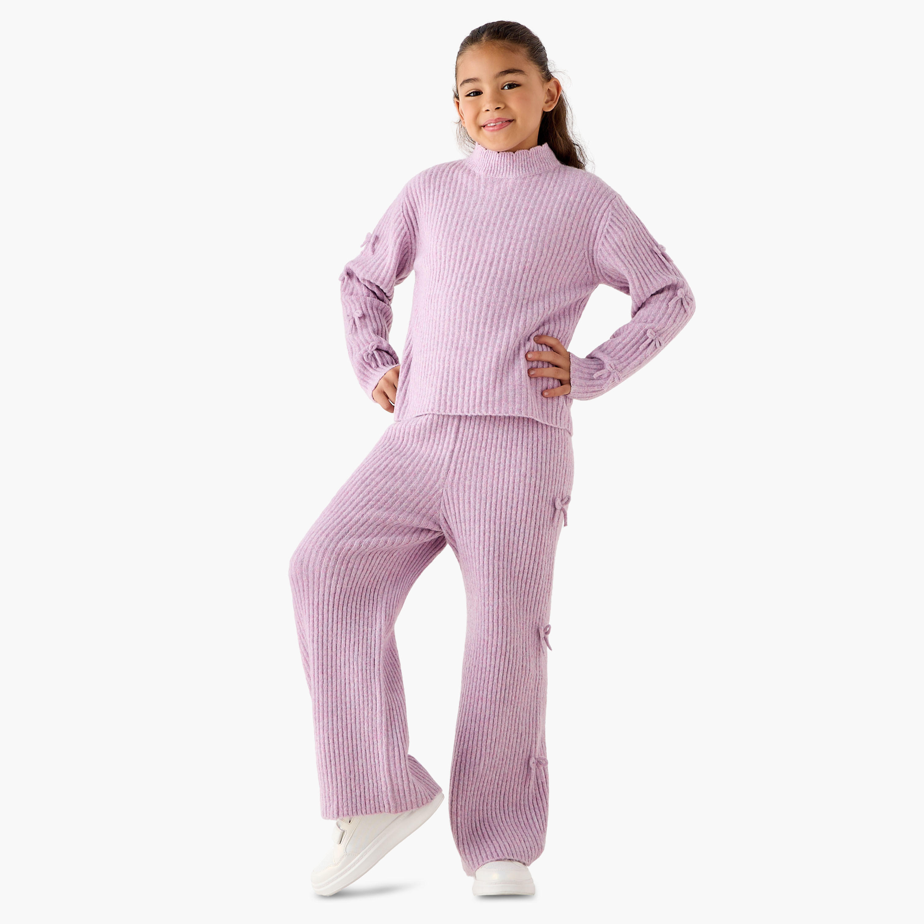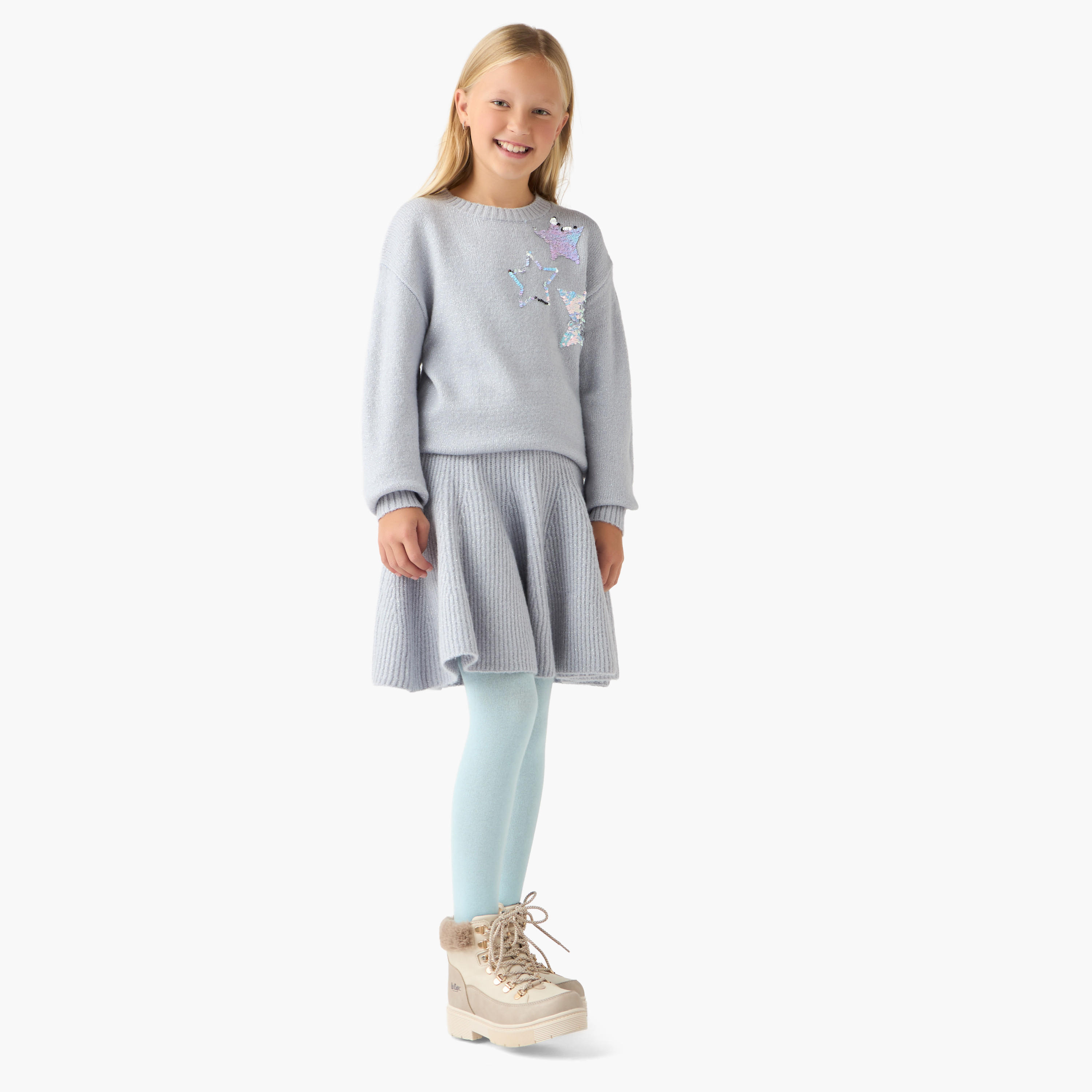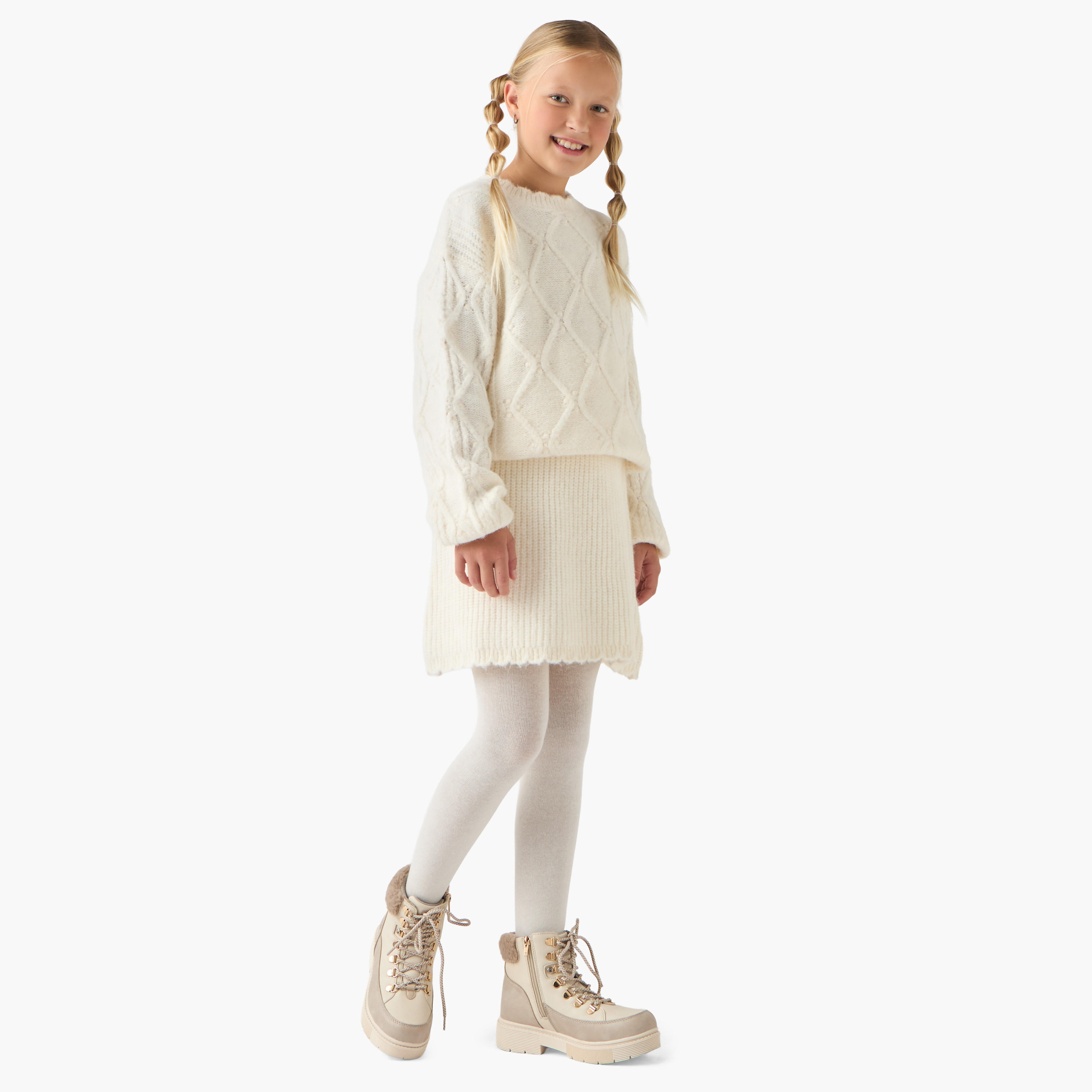 طقم تنورة وجوارب وكنزة صوف برقبة ضيقة وأكمام طويلة للبنات من جونيورز