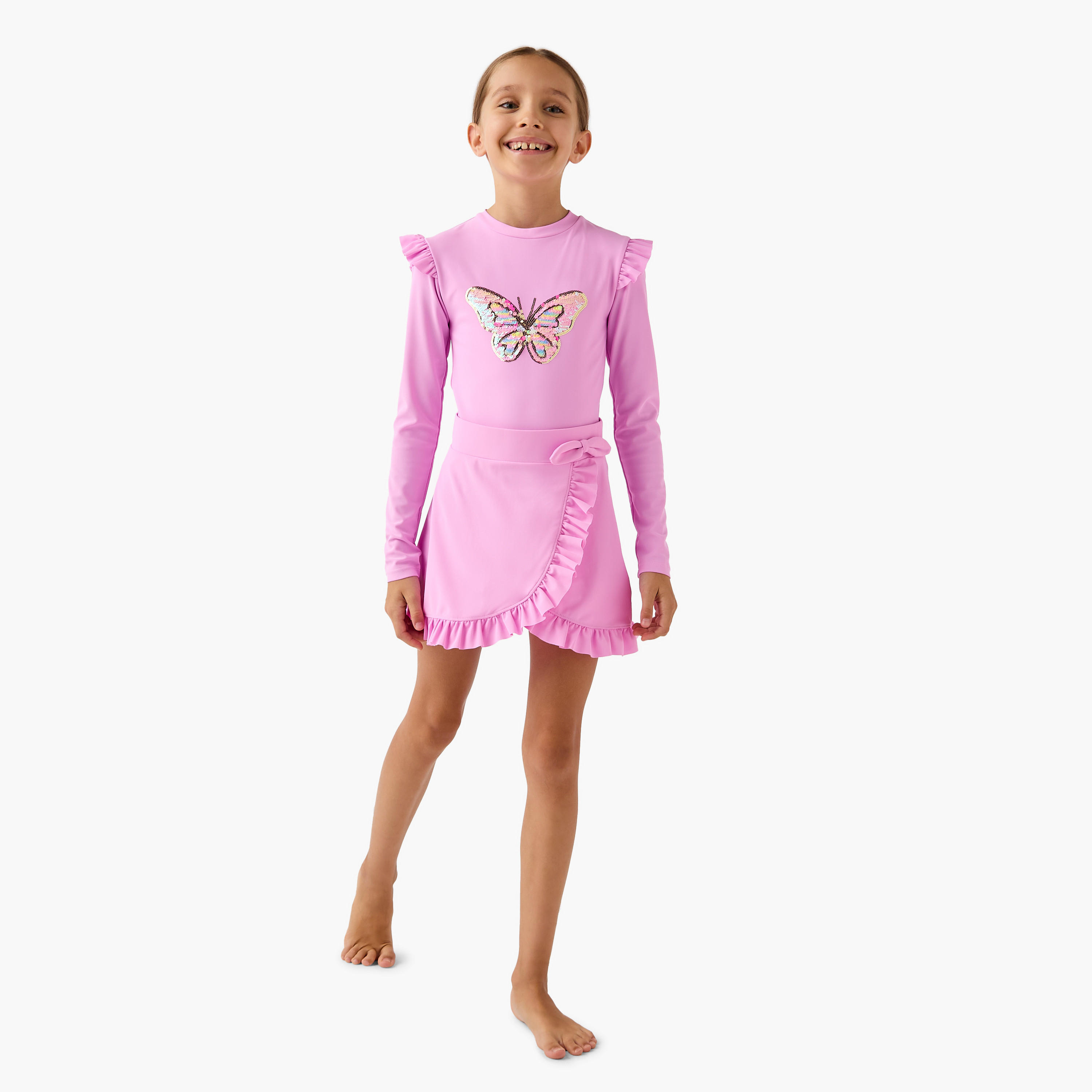 طقم بدلة سباحة بكشكش وتنورة ملفوفة من جونيورز
