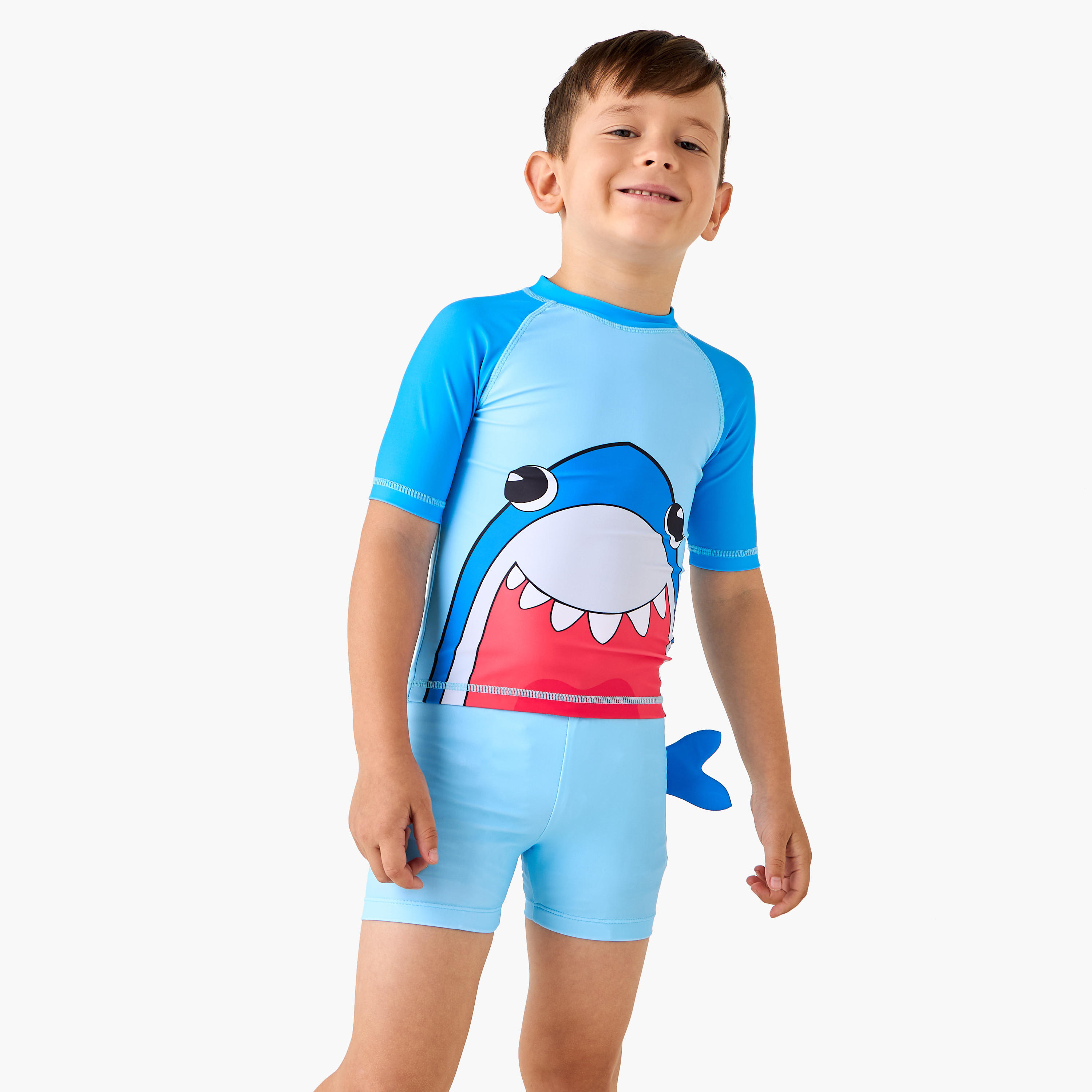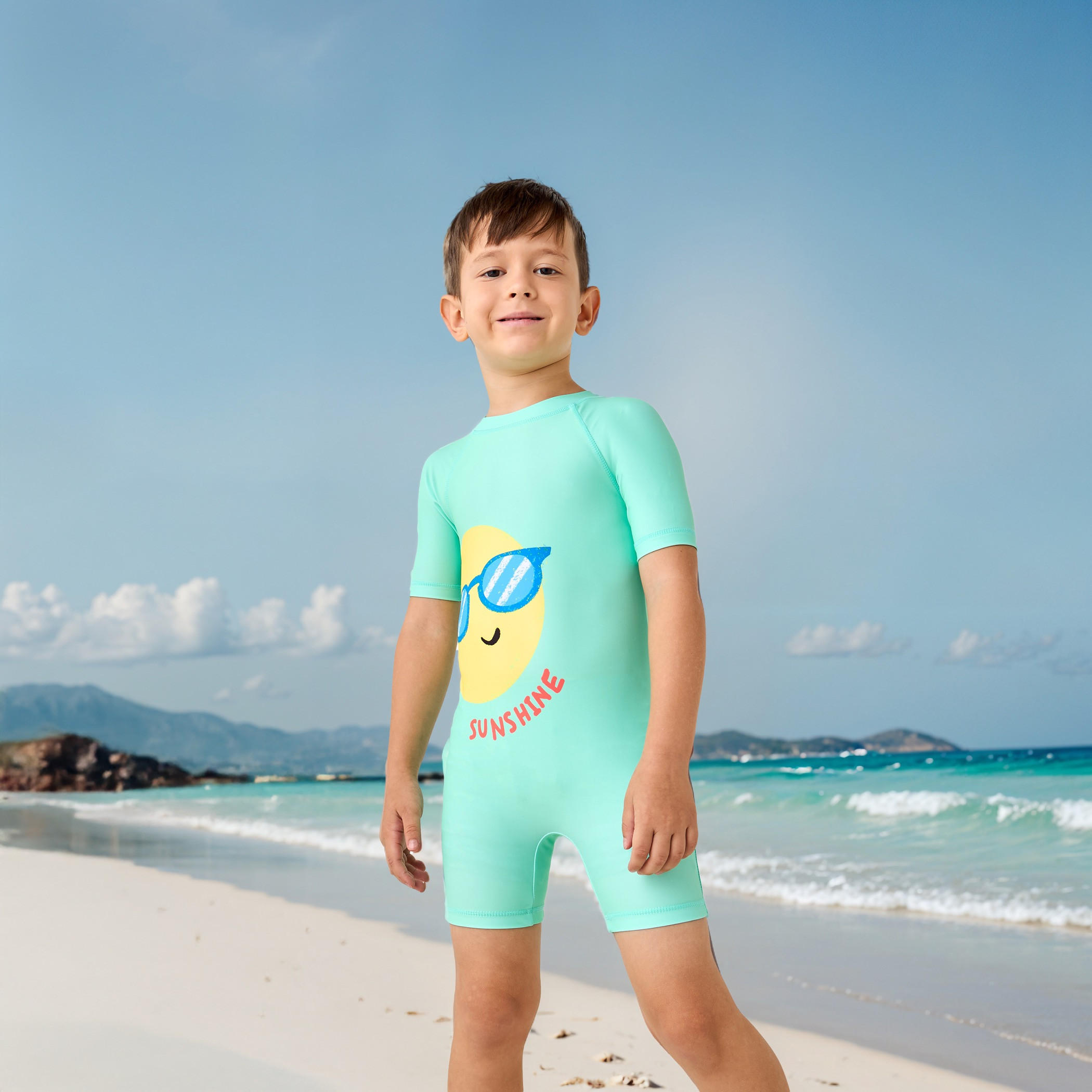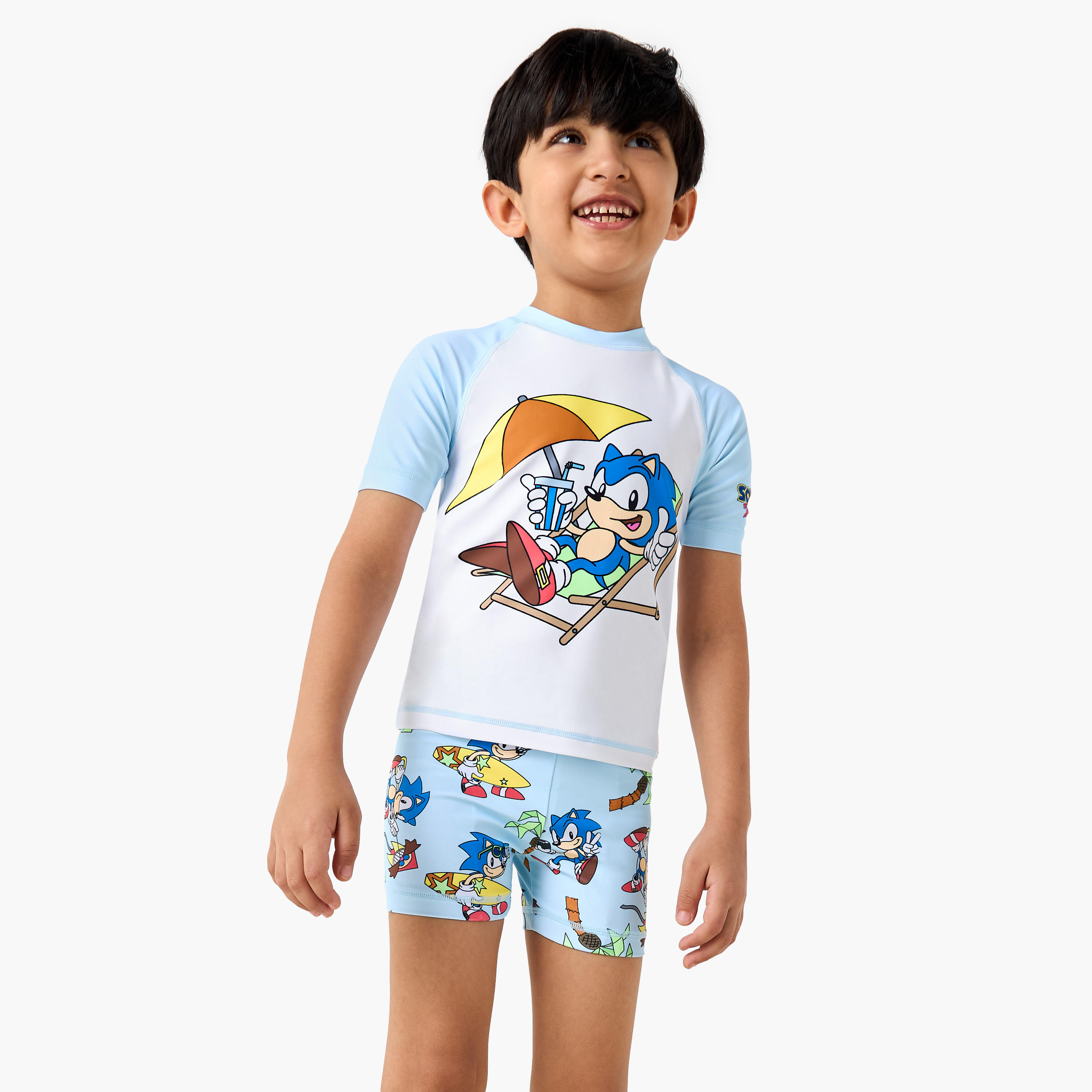 اجعلي صغيرك يستمتع بالسباحة بارتداء هذا الطقم الرائع، يتميز برسومات ساحرة مستوحاة من شخصية سونيك، مما يضفي جوًا من البهجة والمرح على مغامرات البحر أو المسبح. يوفر التيشيرت ذو الأكمام القصيرة حماية إضافية من الشمس، بينما يضمن الشورت المطابق حرية الحركة بفضل حزامه المطاطي المريح. تم تصميمه من قماش يجمع بين البوليستر والإيلاستان، مما يجعله سريع الجفاف وملائمًا للأطفال النشطين.