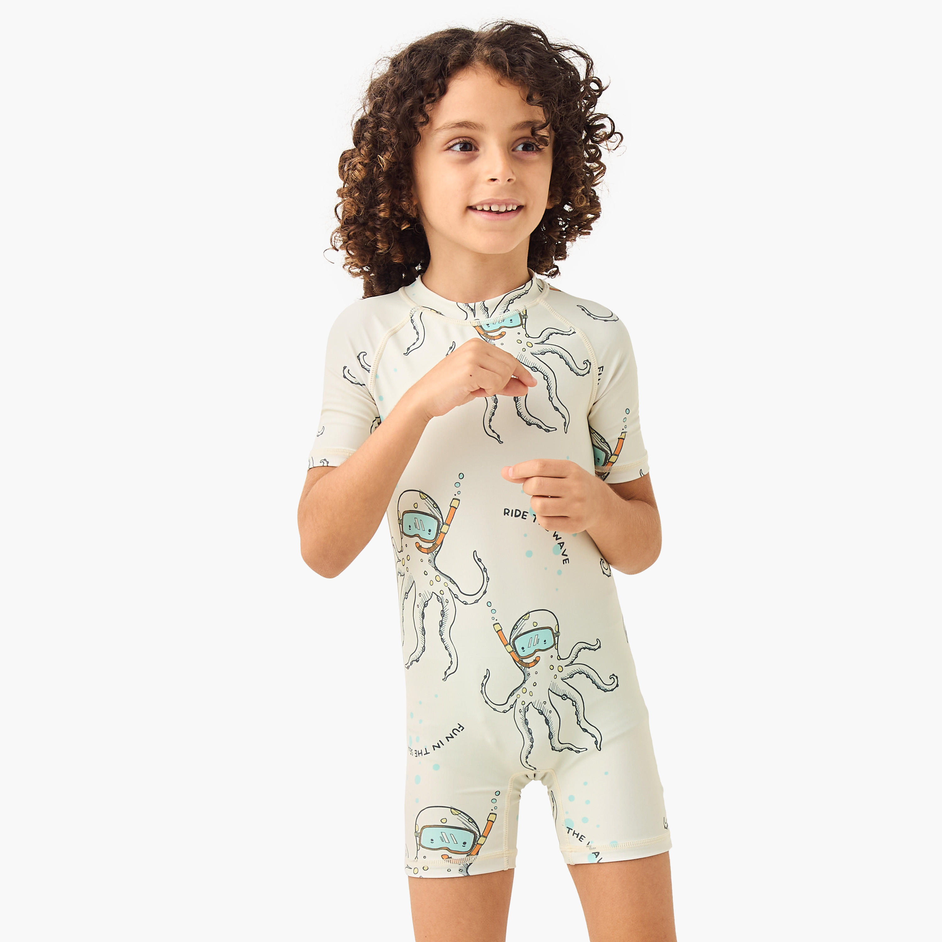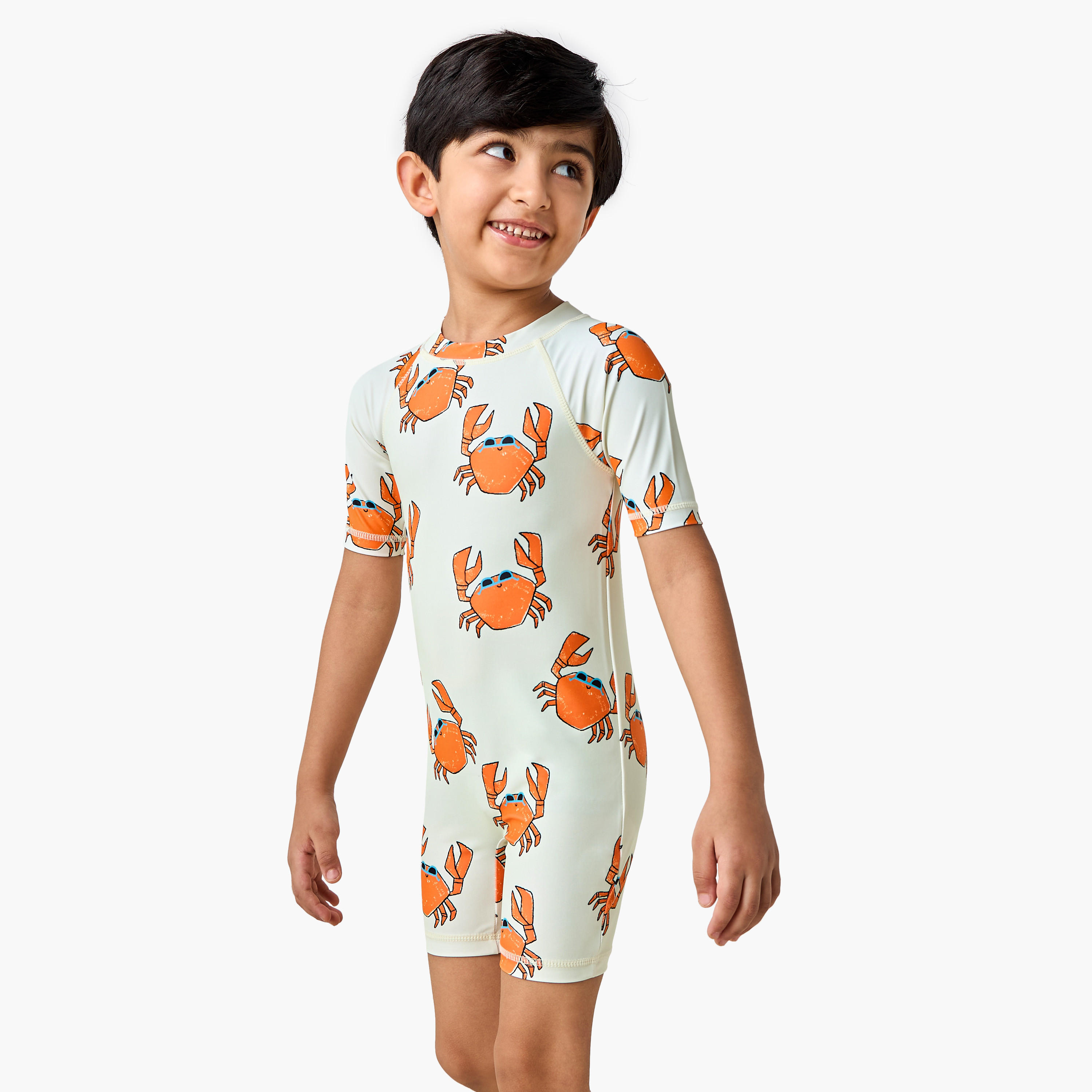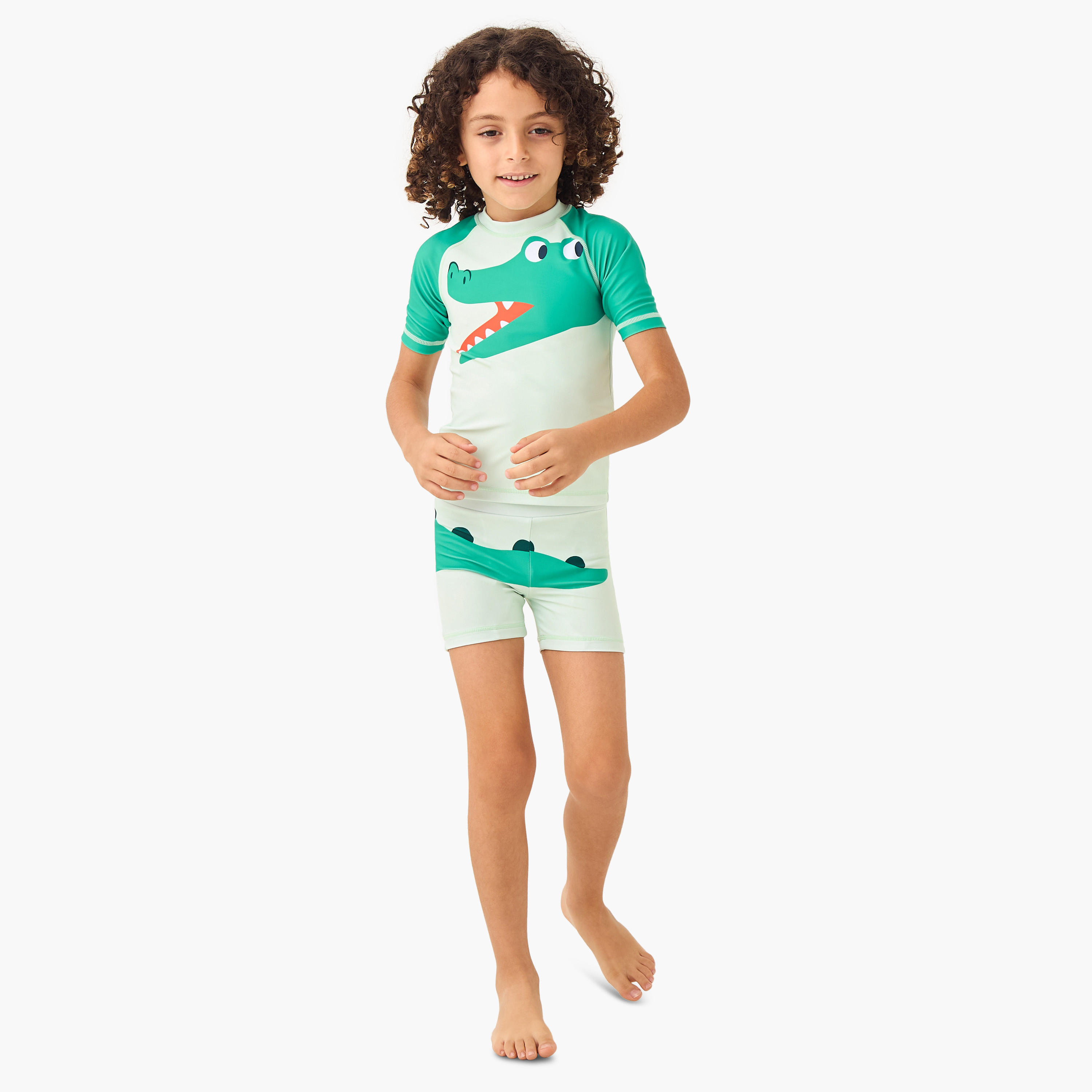اجعلي صغيرك يستمتع بالسباحة بارتداء هذا الطقم الرائع، يتميز برسومات ساحرة مستوحاة من شخصية سونيك، مما يضفي جوًا من البهجة والمرح على مغامرات البحر أو المسبح. يوفر التيشيرت ذو الأكمام القصيرة حماية إضافية من الشمس، بينما يضمن الشورت المطابق حرية الحركة بفضل حزامه المطاطي المريح. تم تصميمه من قماش يجمع بين البوليستر والإيلاستان، مما يجعله سريع الجفاف وملائمًا للأطفال النشطين.