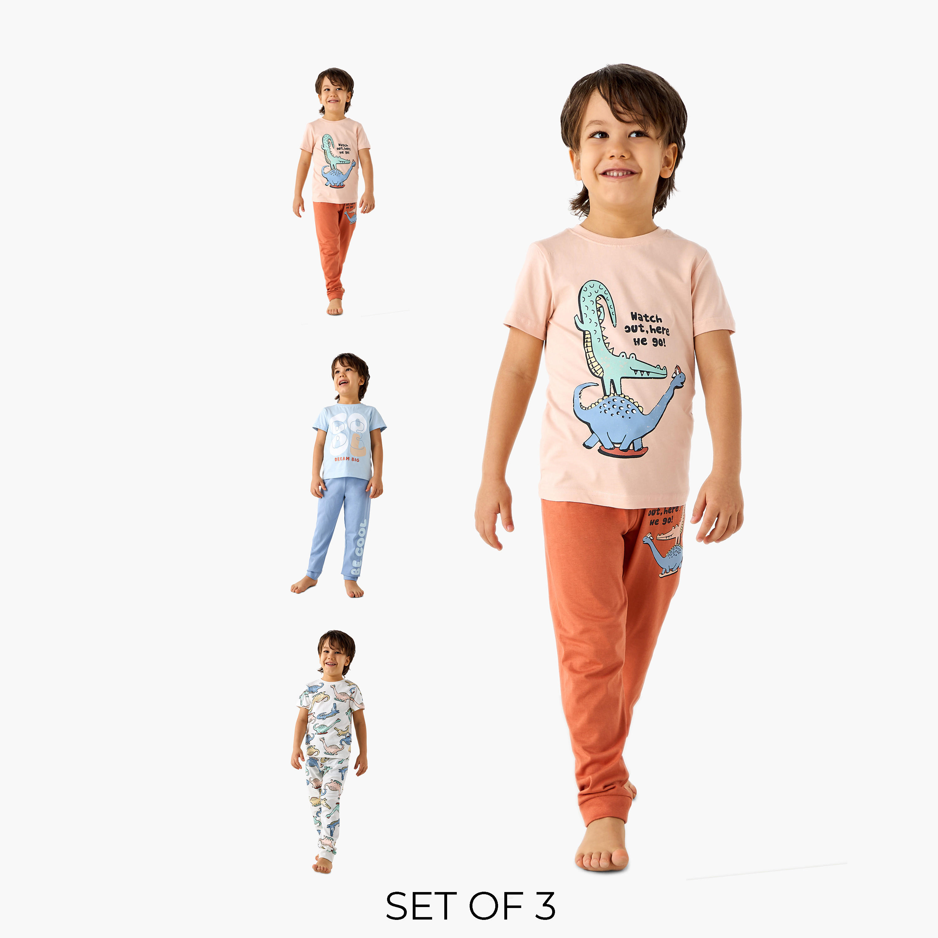 طقم بنطلون بيجاما وتيشيرت بطبعات من جونيورز - مجموعة من 3 أطقم