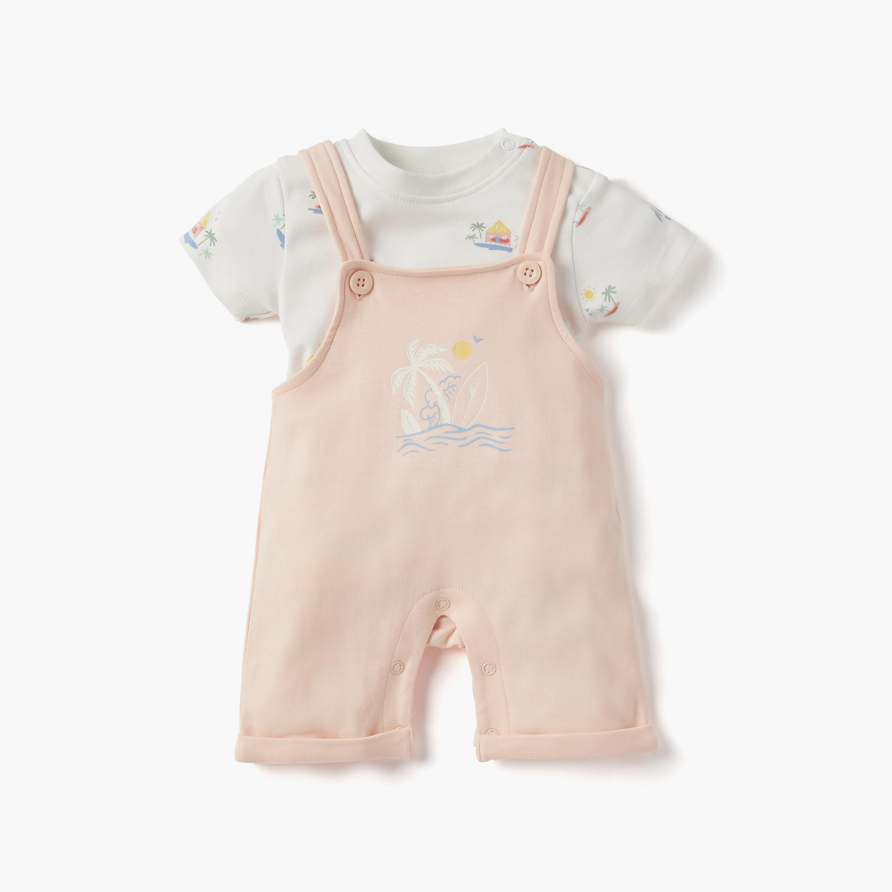 طقم أفرول وبدلة نوم بطبعات جرافيك وزر إغلاق كبس من جيجلز