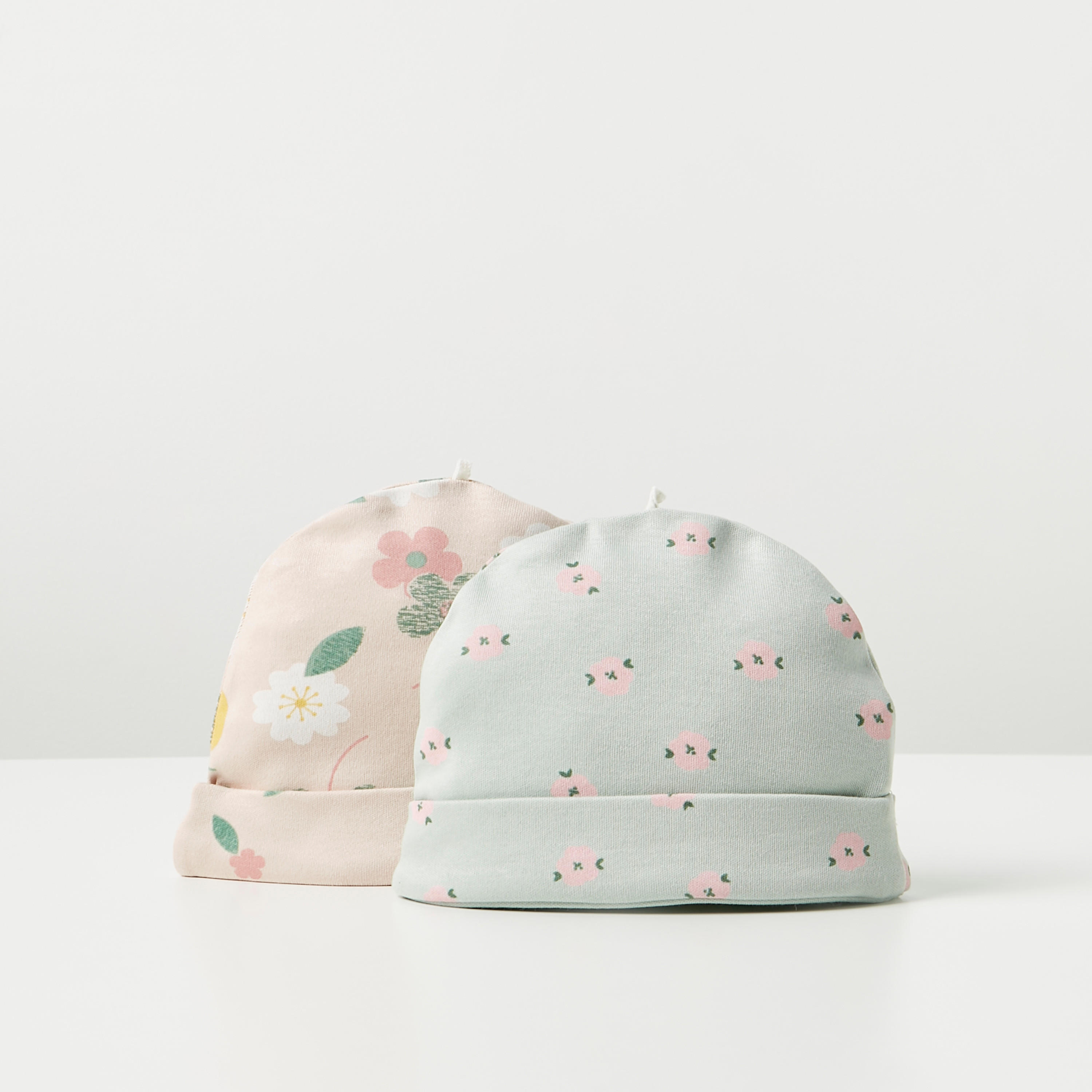 كاب بيني قطن بطبعات زهرية وحافة مطاطية من جونيورز - طقم من قطعتين