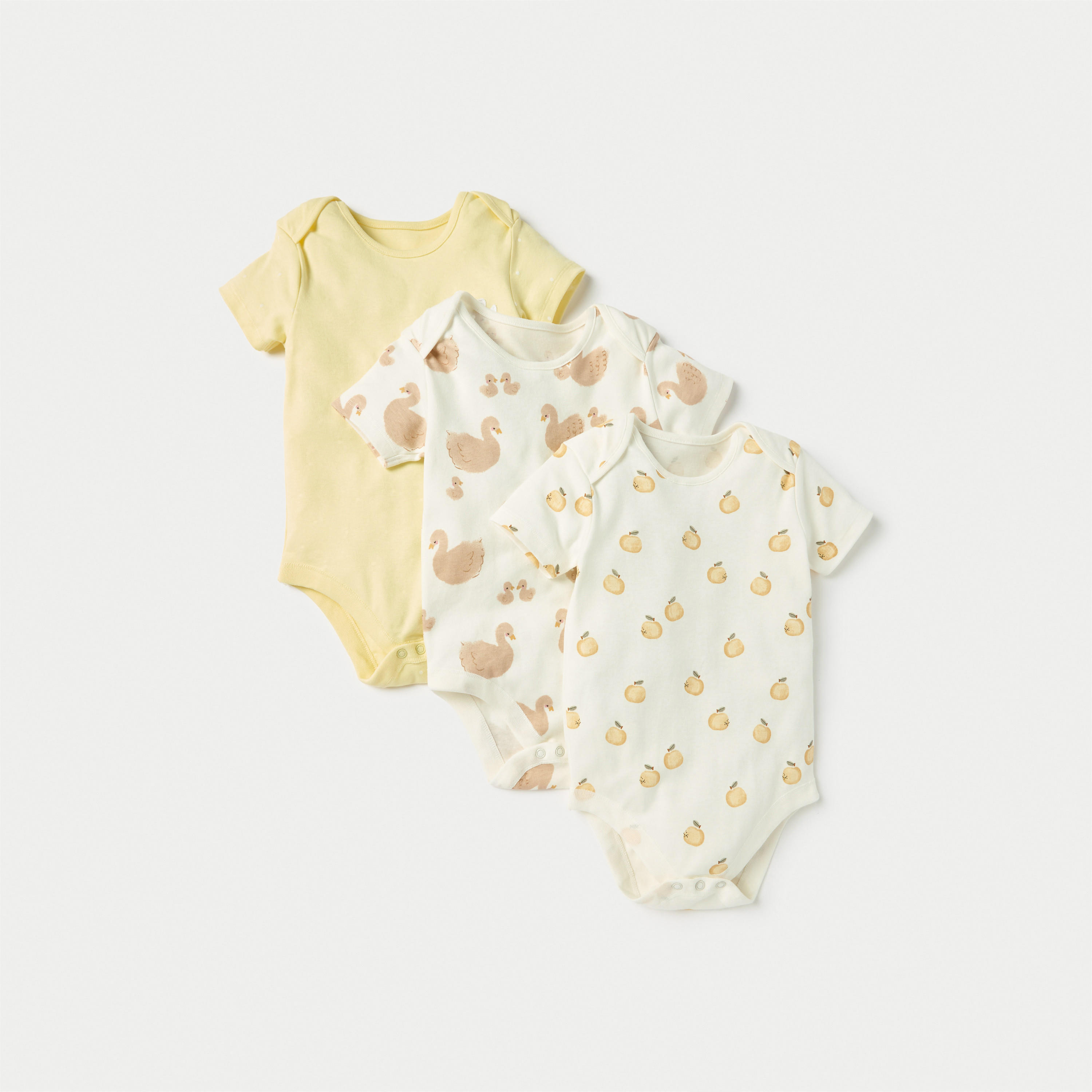 اقتني لصغيرتك مجموعة البودي سوت الرائعة هذه لتحافظي على راحتها. مكونة من 3 قطع، وتتميز بأزرار إغلاق كبّاسة لسهولة تغيير الحفاضات، ومزينة بطبعات لطيفة. مصنوعة من خامة قطنية عالية الجودة وناعمة على البشرة، كما أنها مثالية للارتداء اليومي.