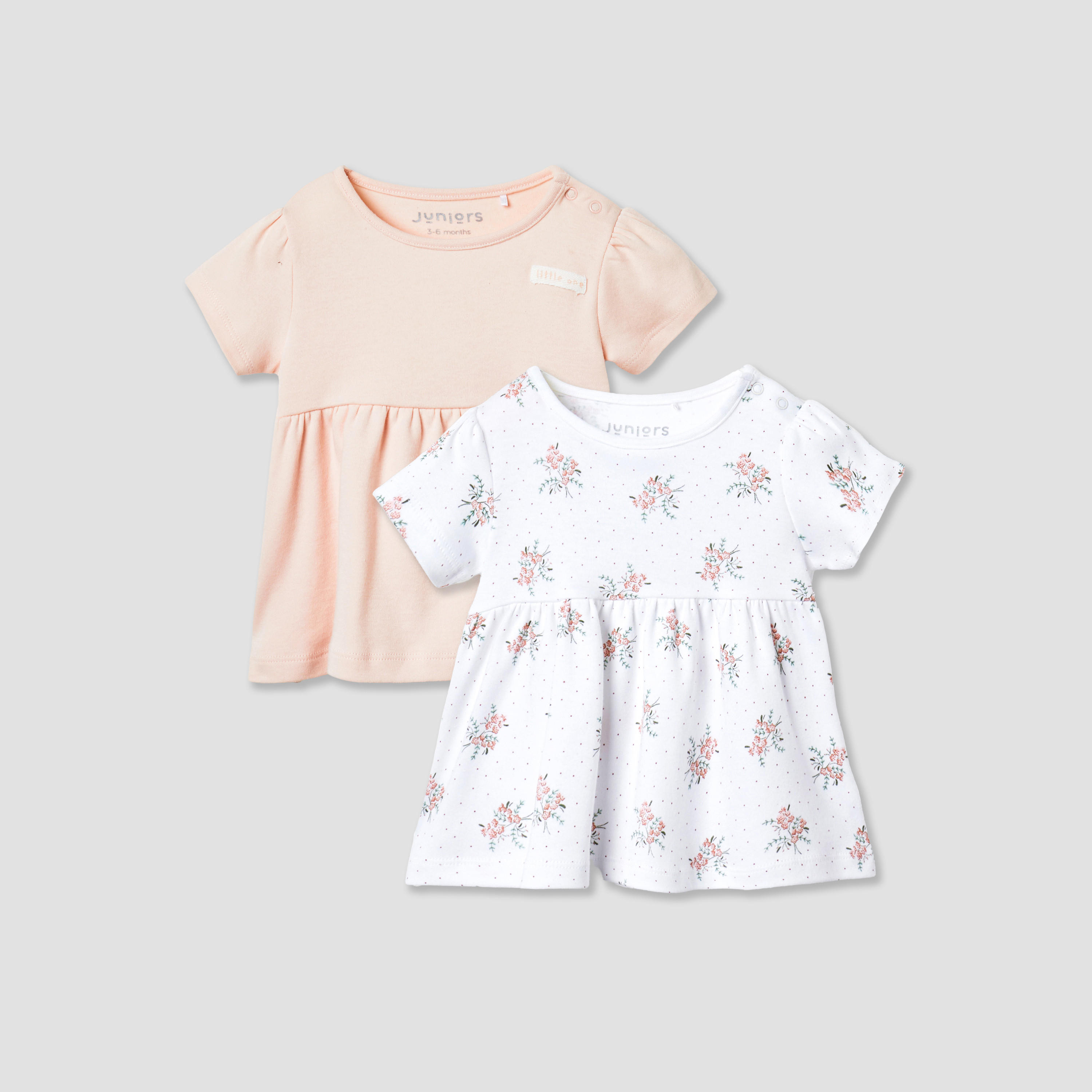 فساتين إيه لاين متنوعة بياقة مستديرة وأكمام قصيرة من جونيورز - طقم من قطعتين