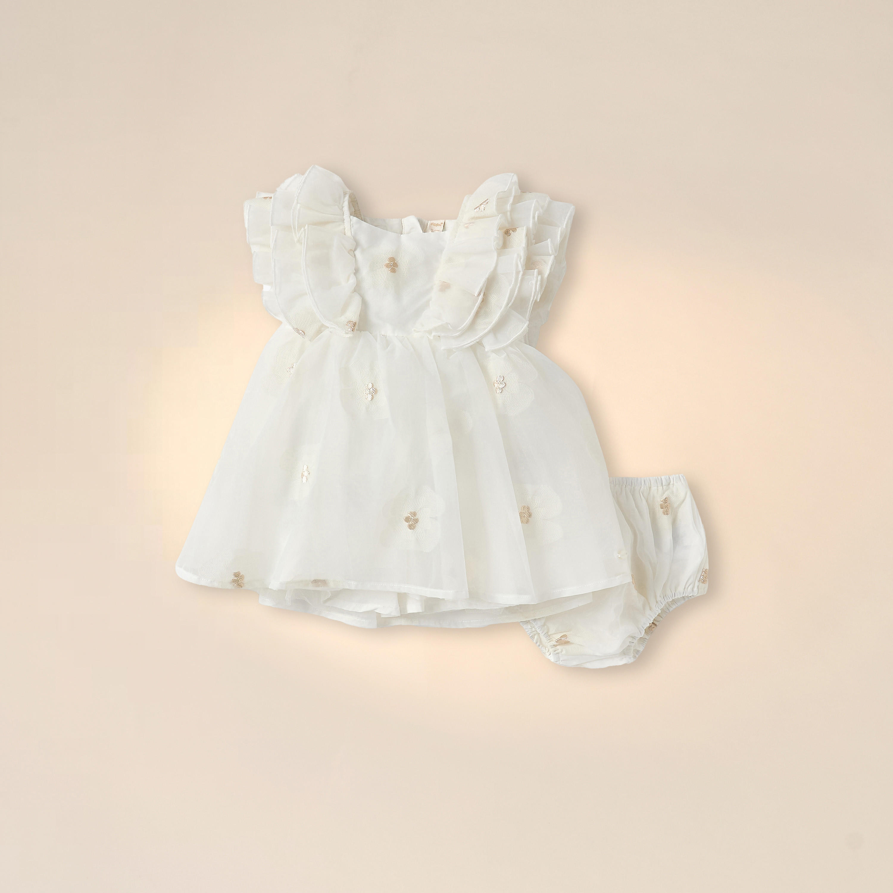 فستان بأكمام قصيرة بترتر وتزيينات زهرية من جونيورز