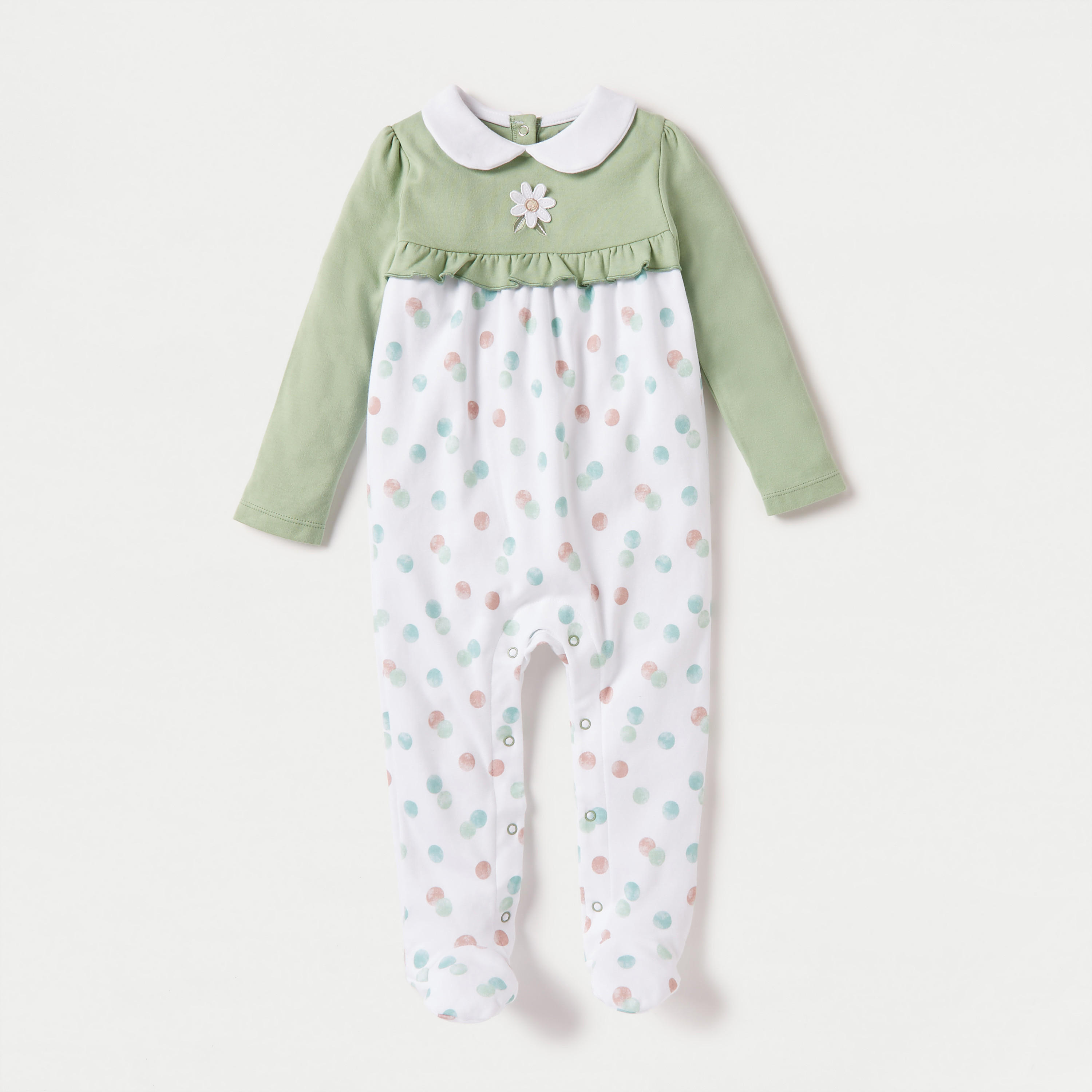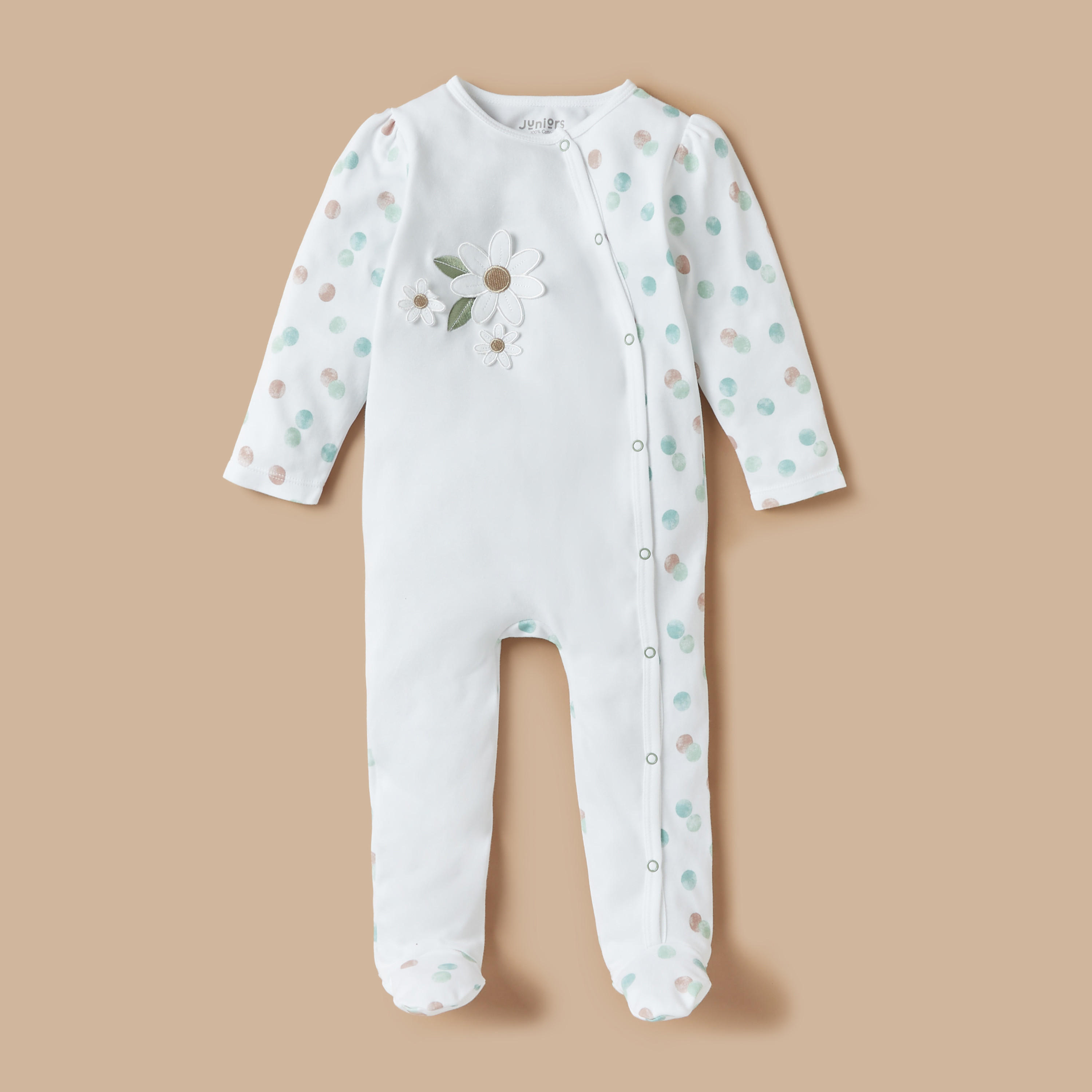 بدلة نوم بطبعات وأقدام مغلقة مع أزرار إغلاق وكشكش من جونيورز