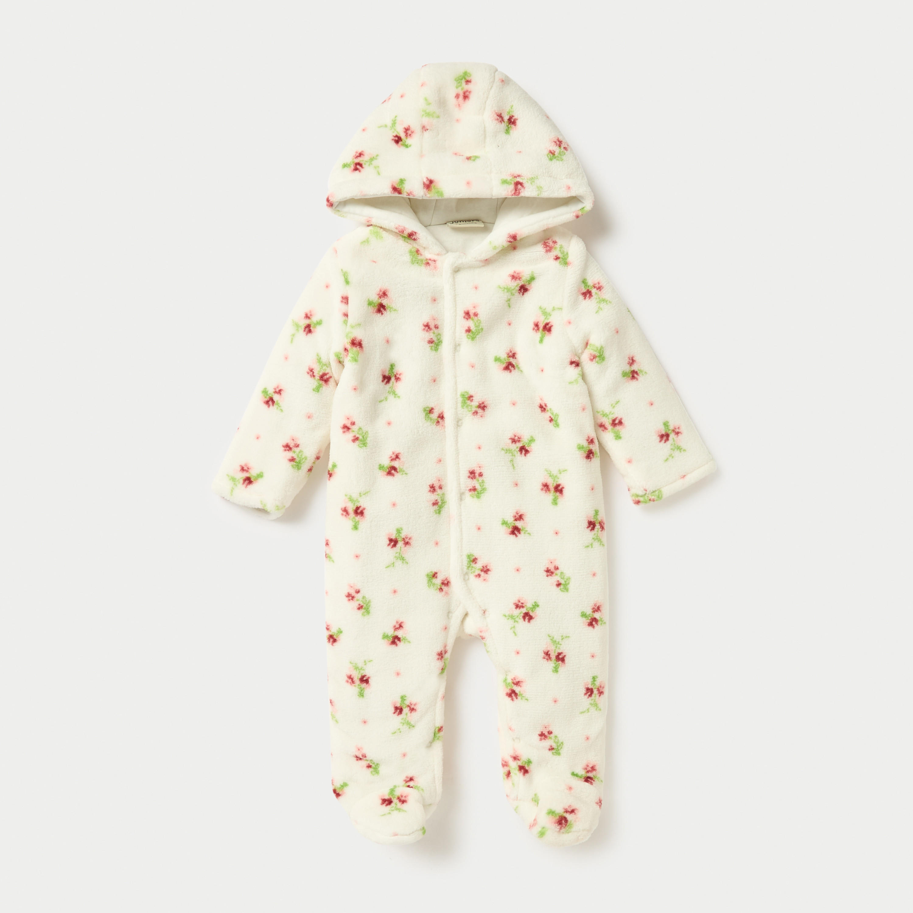 بدلة نوم مبطنة مغلقة القدمين بأكمام طويلة وقبعة وطبعات أزهار من جونيورز