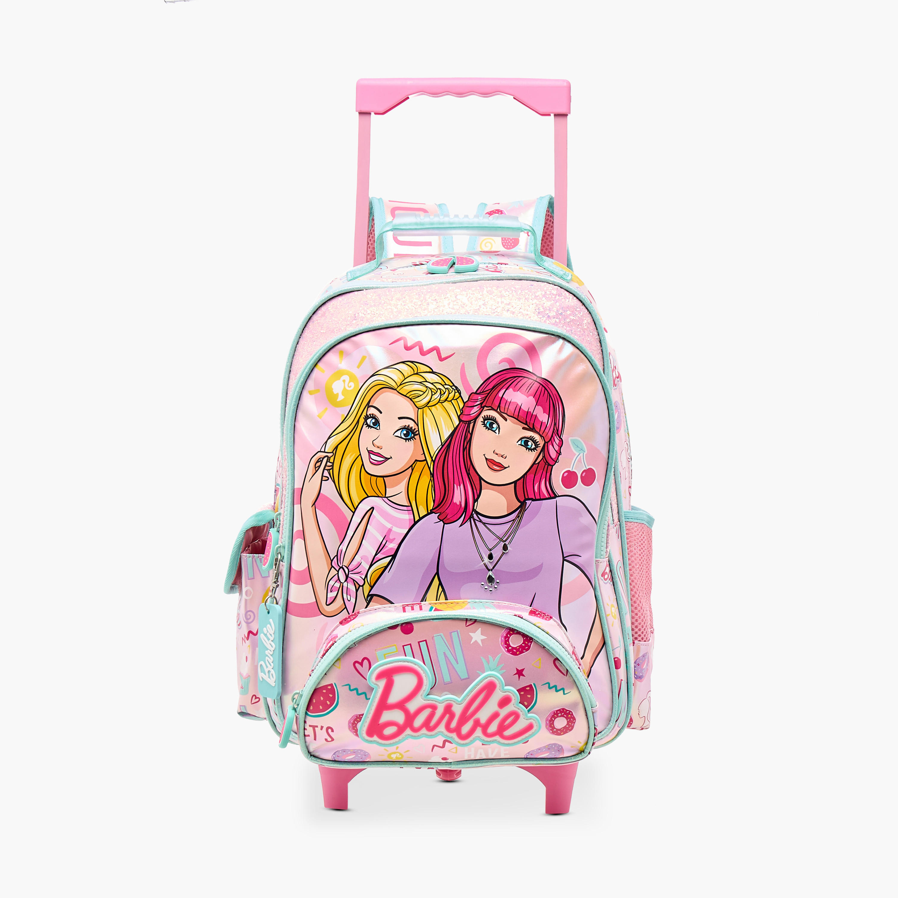 • تعد شنطة الترولي المصممة بطبعات بشخصية باربي مقاس 16 بوصة هذه ضرورية للفتيات في سن المدرسة.