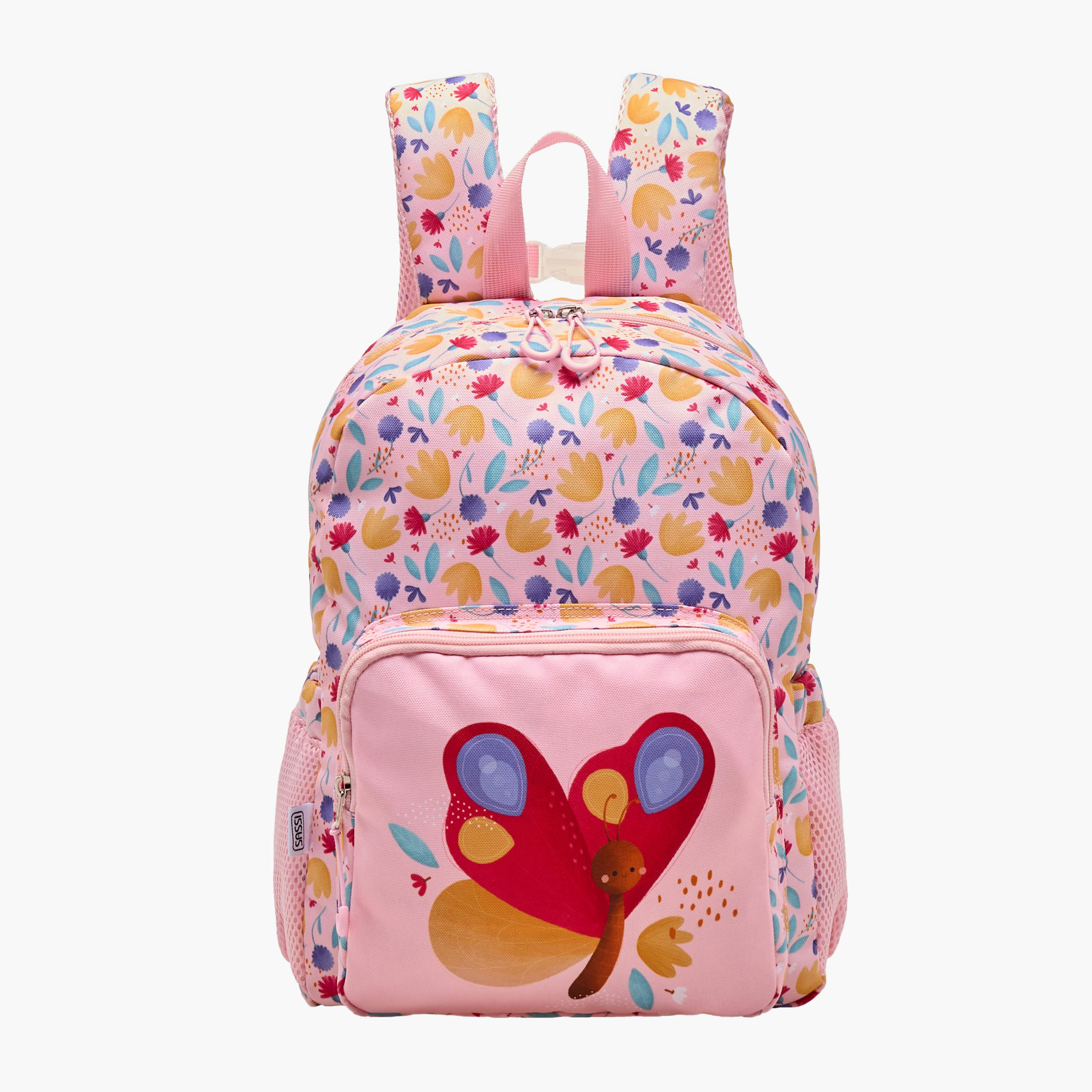 شنطة ظهر بطبعات فراشة وحمالات قابلة للتعديل وسحاب إغلاق من ساسي - 14 بوصة