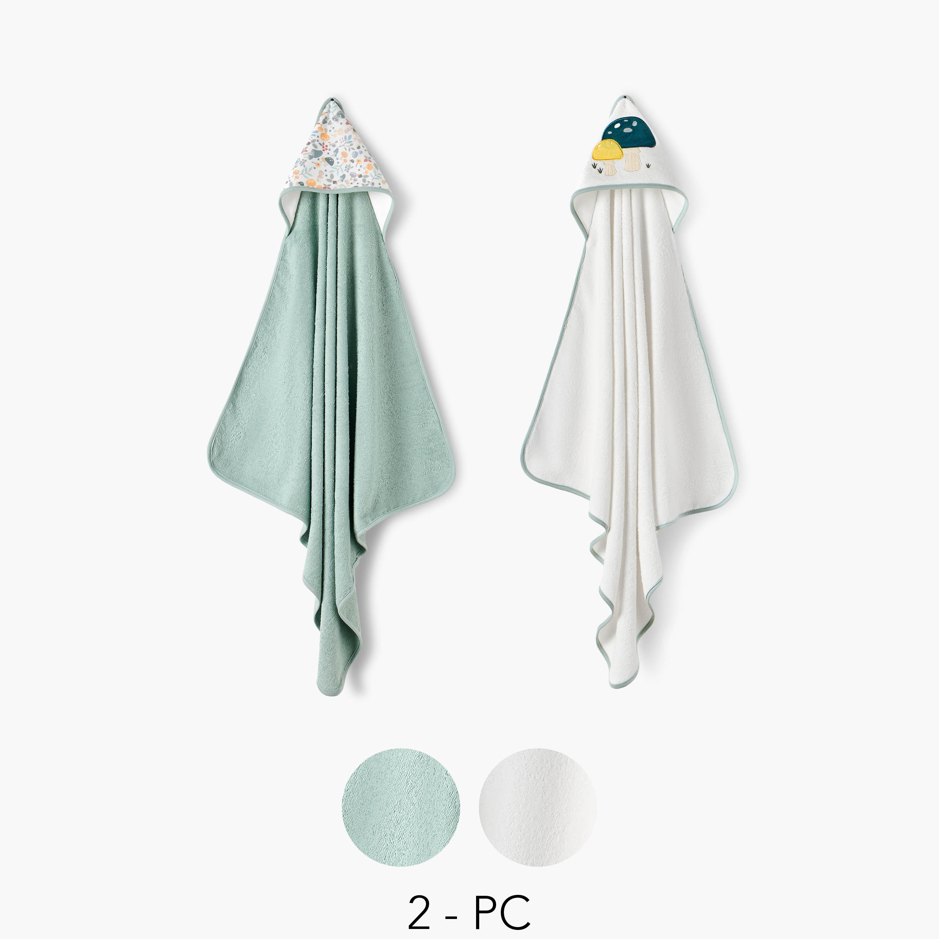 Juniors 2-Piece Mushroom Embroidered Hooded Towel Set - 75x75 cm