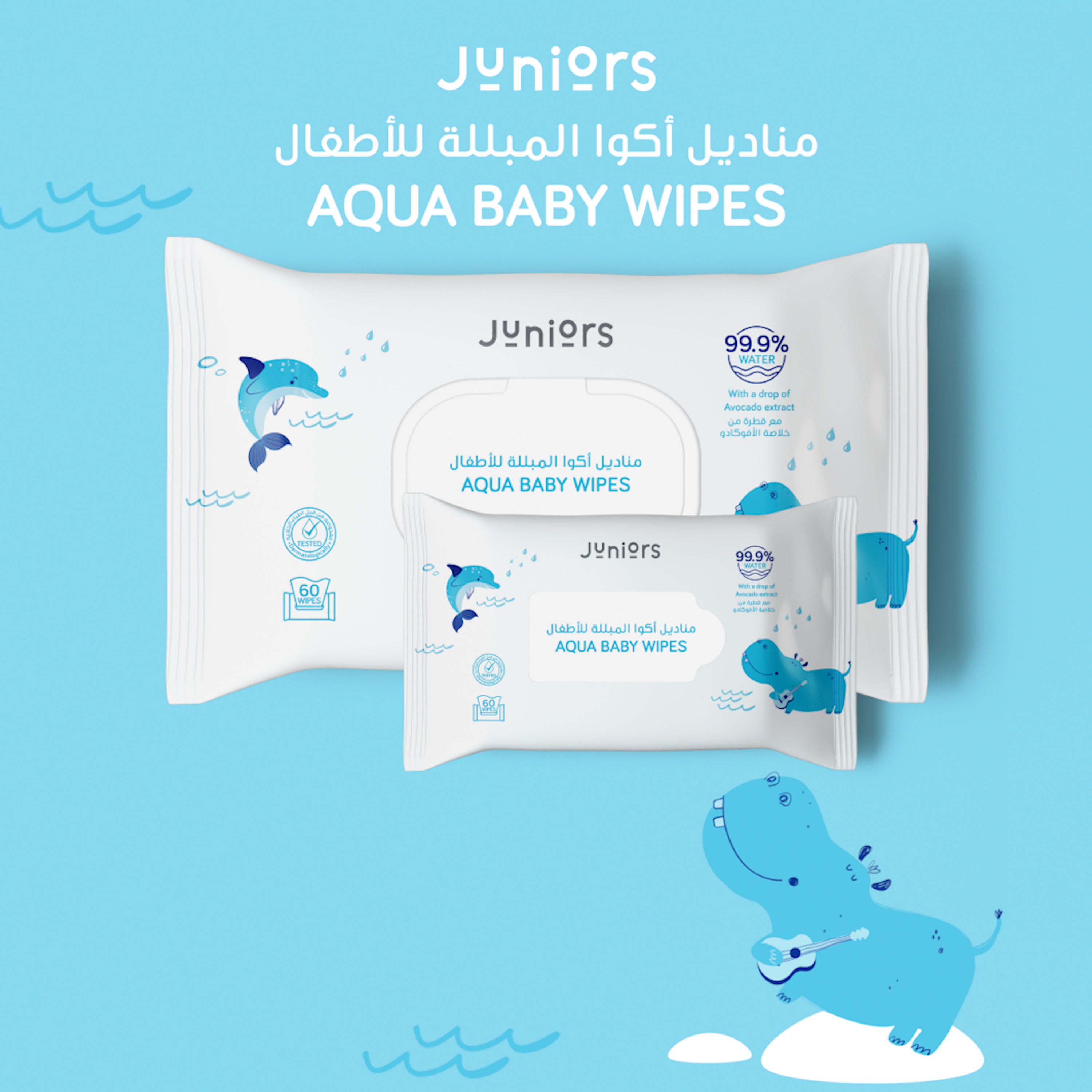 Juniors Aqua Baby Wipes Travel Pack - 80 Sheets