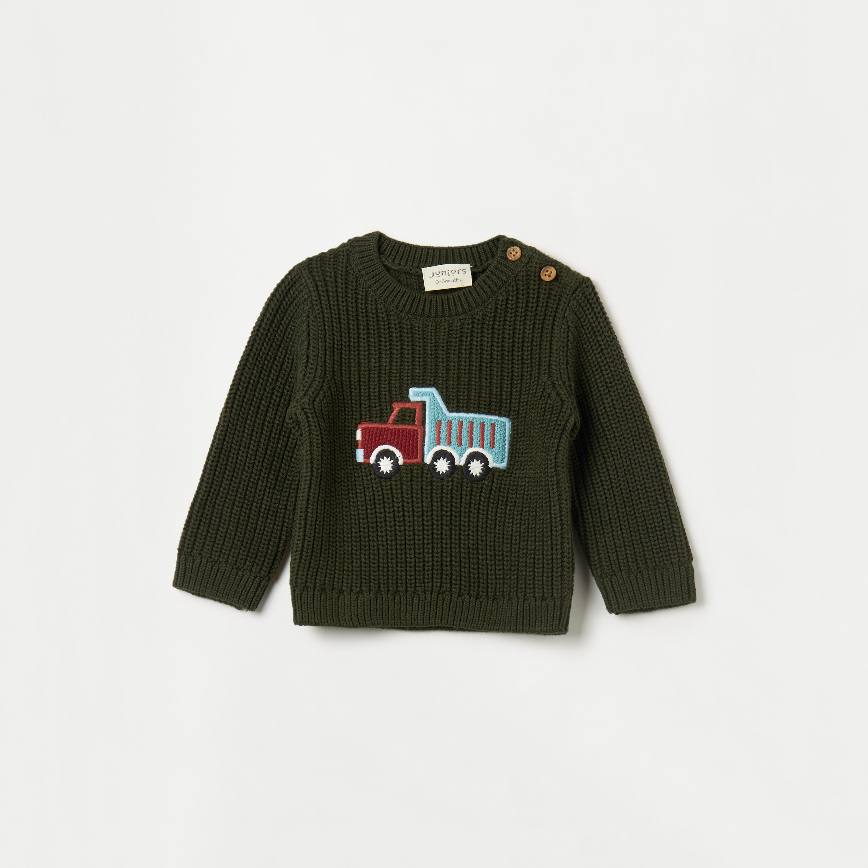 Juniors Truck Embroidered Sweater with Long Sleeves