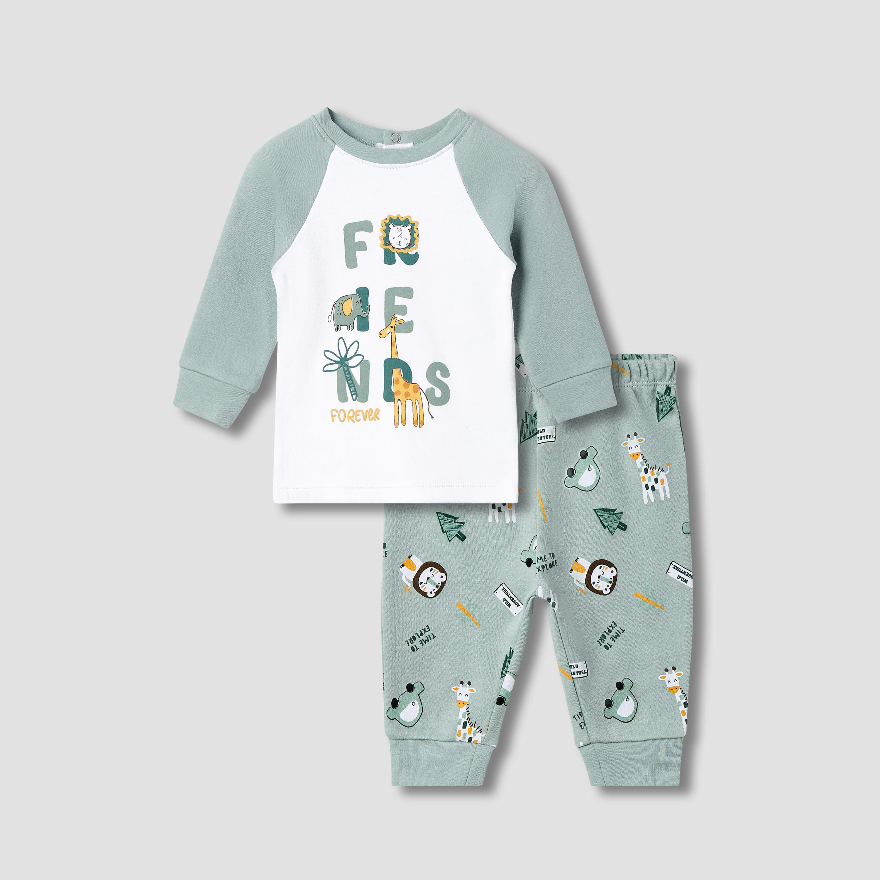 Juniors Crew Neck Sleepsuit with Animal Print - Cotton - Long Sleeves