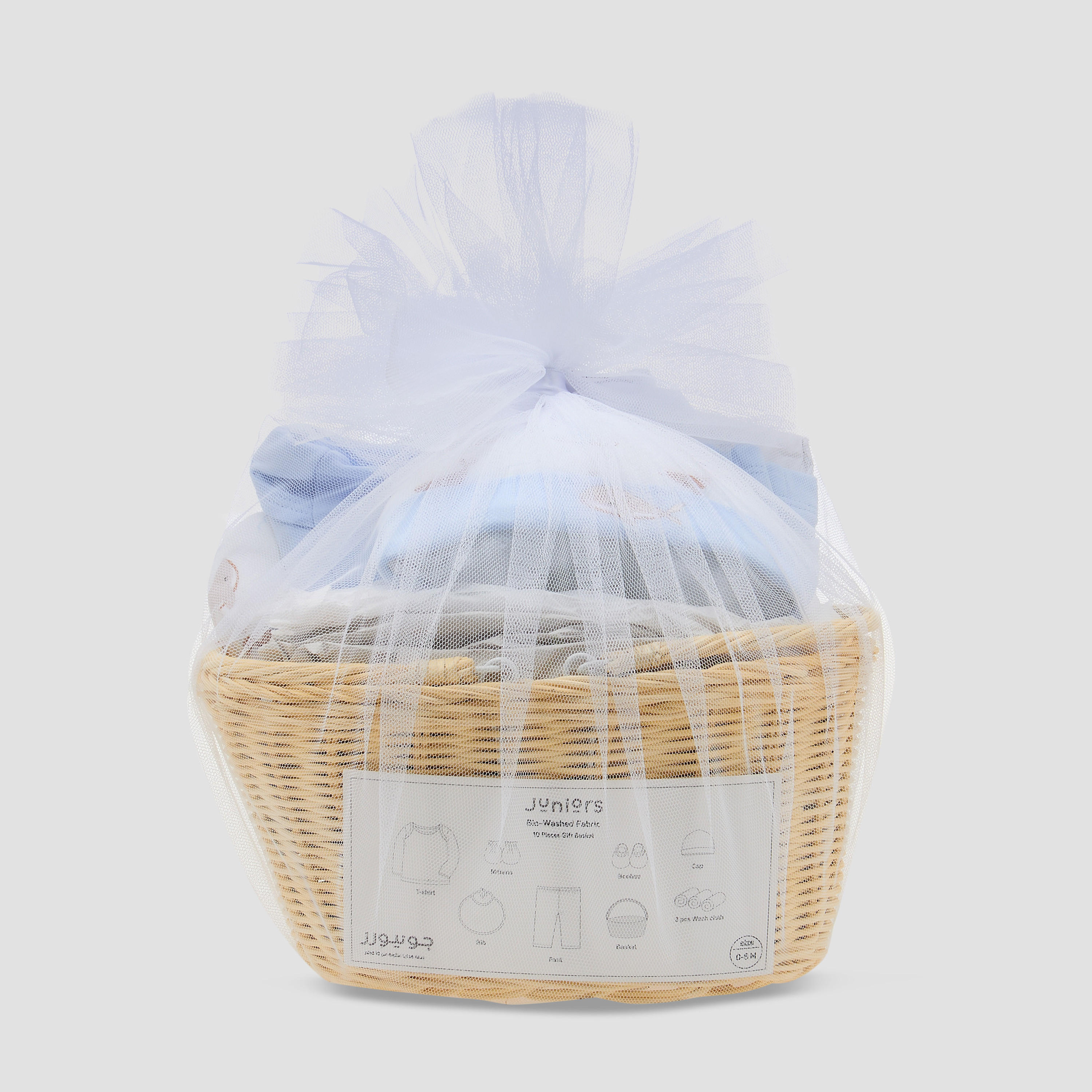 This charming ten-piece whale baby gift basket includes a long-sleeved shirt, trousers, bib, hat, mittens, five muslin cloths etc. The soft, comfortable material ensures gentle wear for your little one. This adorable set makes a thoughtful present for newborns and is perfect for everyday use. The whale design adds a touch of whimsy to your baby's wardrobe.