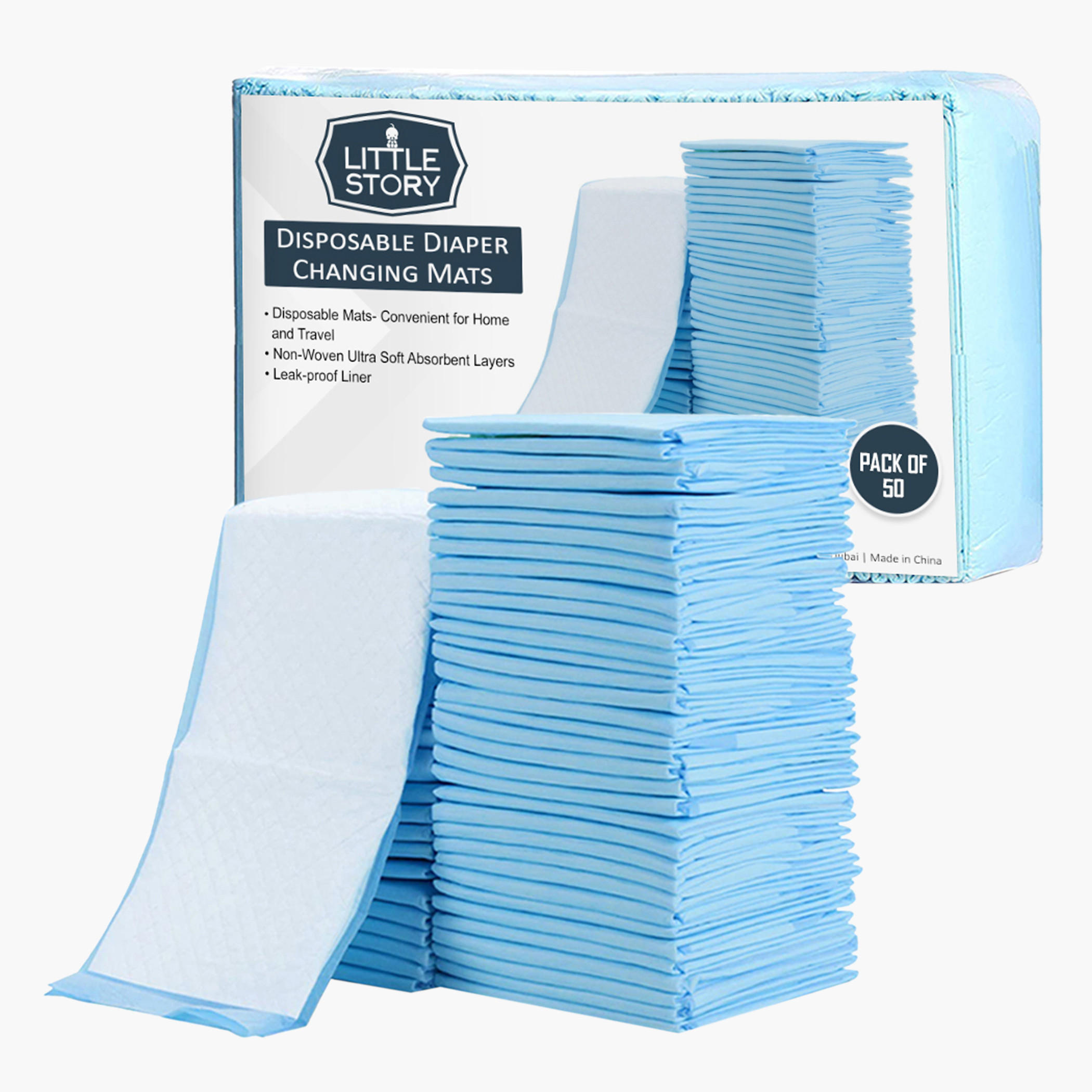 Equip your baby's collection of essentials with valuable picks like this set of changing mats. The set includes fifty changing mats made with leakproof lining and soft, absorbent layers. The mats are perfect go-to's for use at home as well as when out and about.
