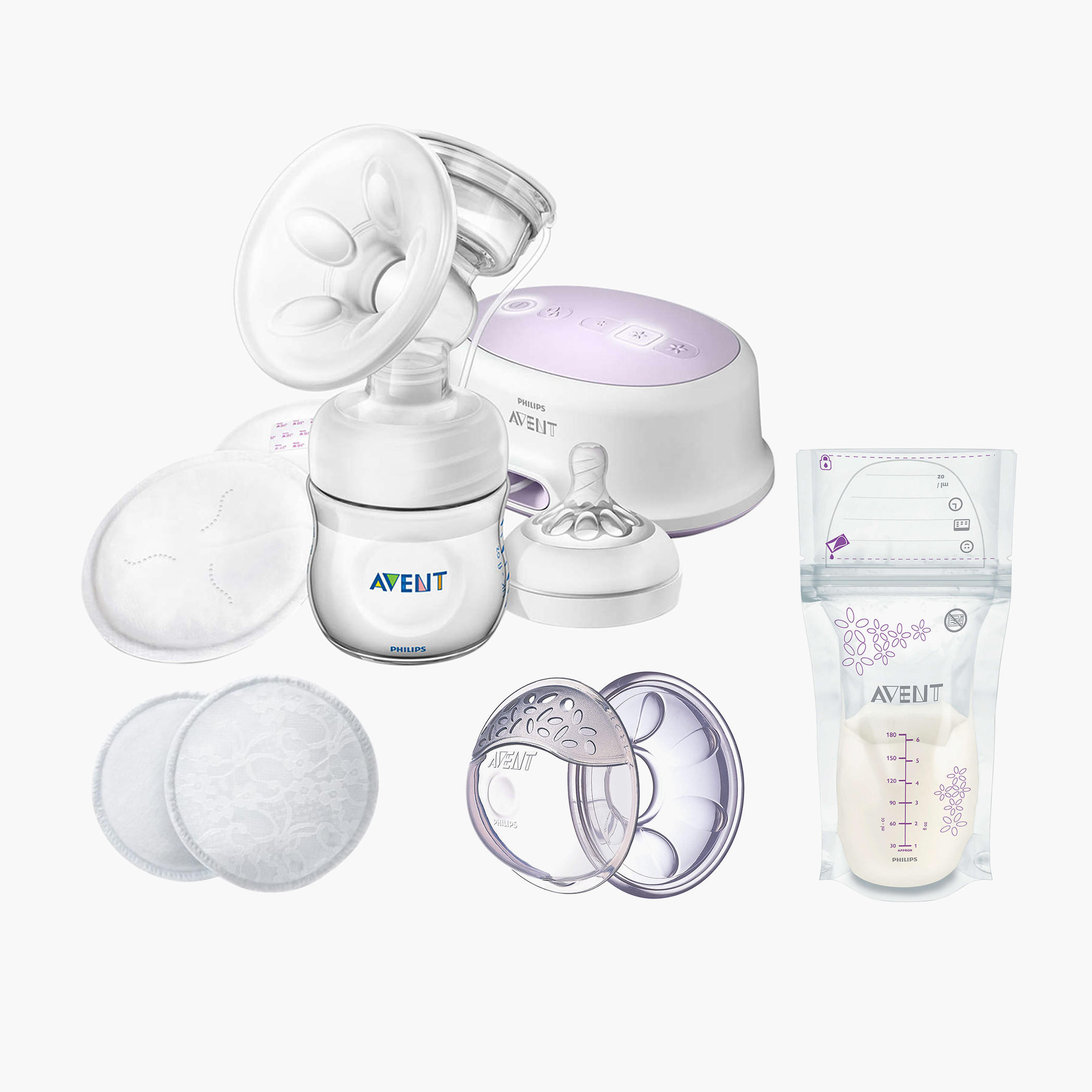 Bundle Includes: Avent Ultra Comfort Single Electric Breast Pump + Philips Avent Breast Milk Storage Bags + Philips Avent Breast Shells + Philips Avent Wash Breast Pads + Philips Avent Night Pads + Philips Avent Day Pads