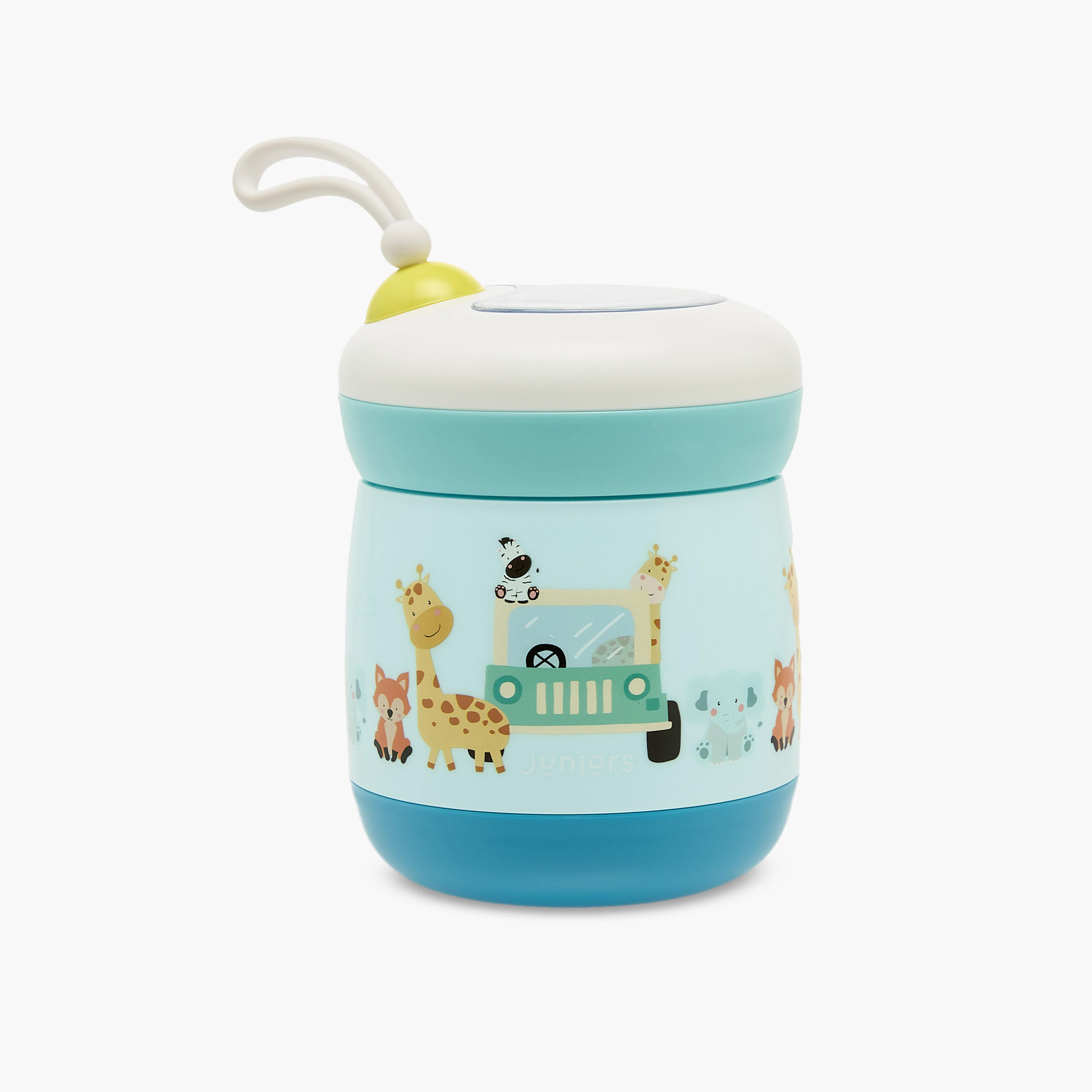 This charming food jar, featuring an engaging fruit print design, is perfect for keeping your little one's meals warm or cool on the go. Crafted from durable stainless steel, it ensures food freshness and maintains temperature effectively. The integrated spoon offers ultimate convenience for feeding anytime, anywhere. This food jar is an essential accessory for parents seeking practical and appealing solutions for their child's mealtimes.