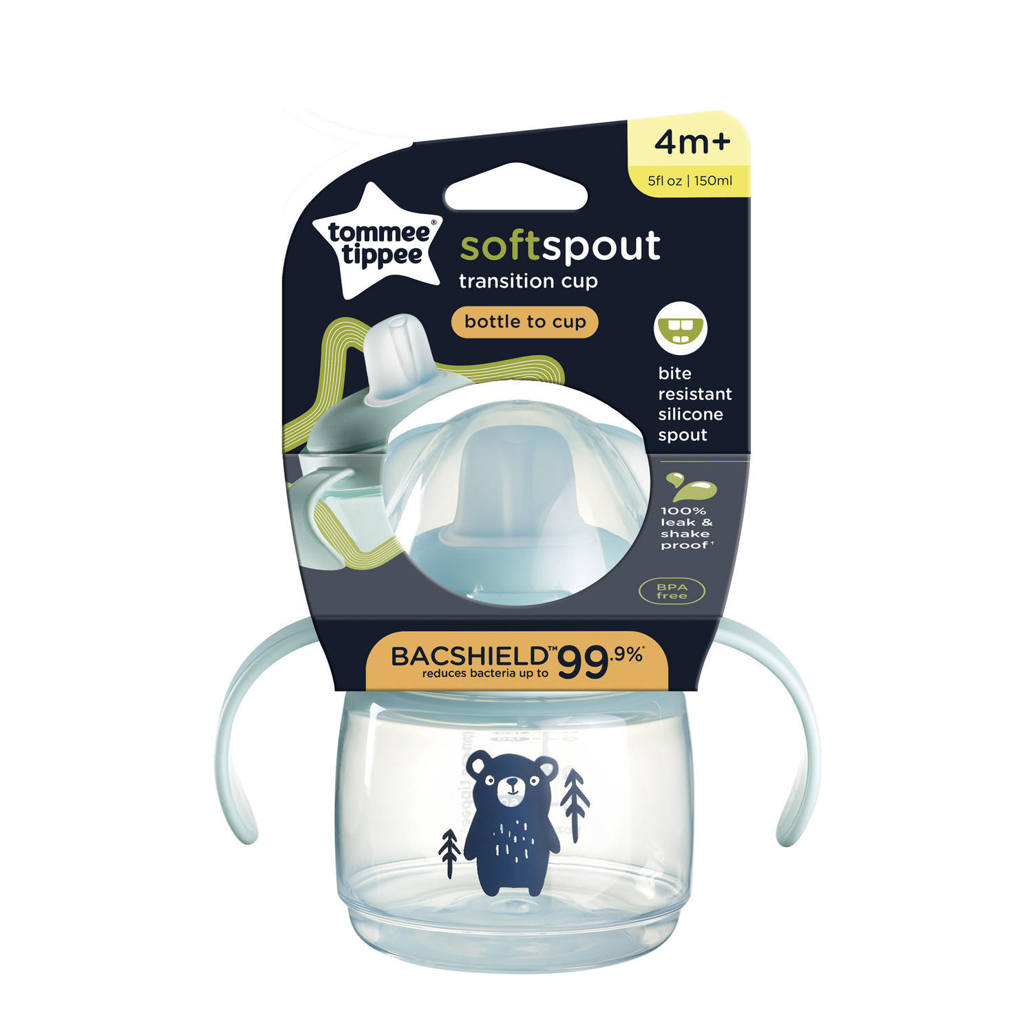 This softspout transition cup with easy-grip handles is perfect for little ones aged four months and older. The cup features a soft, bite-resistant silicone spout that is gentle on gums, making it ideal for transitioning from bottle to cup. This BPA-free cup also includes BACSHIELD™ technology, reducing bacteria by up to 99.9%. The leak-proof and spill-proof design offers added convenience for parents.