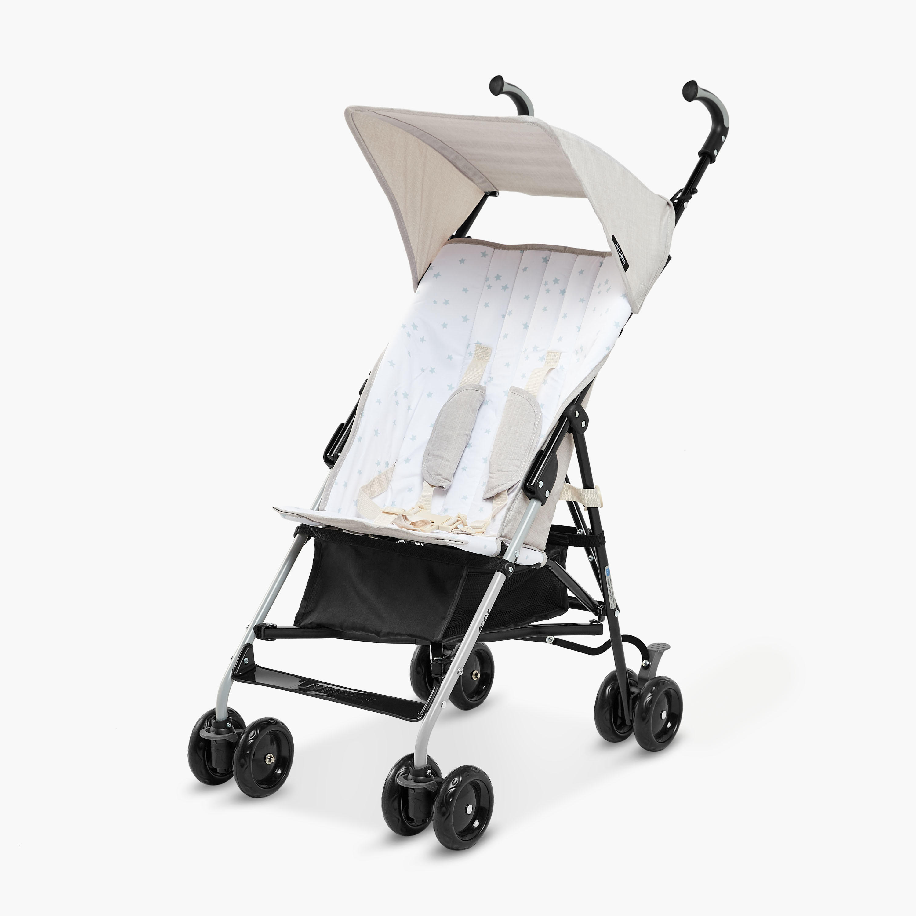 A lightweight and compact umbrella stroller that is perfect for everyday use, this pick from Juniors is a must-have for your little one's outdoor adventures. It is easy to fold and unfold, and can be stored in a small space when not in use. The buggy also features a five-point harness for child safety, an adjustable sun canopy, and a large storage basket.