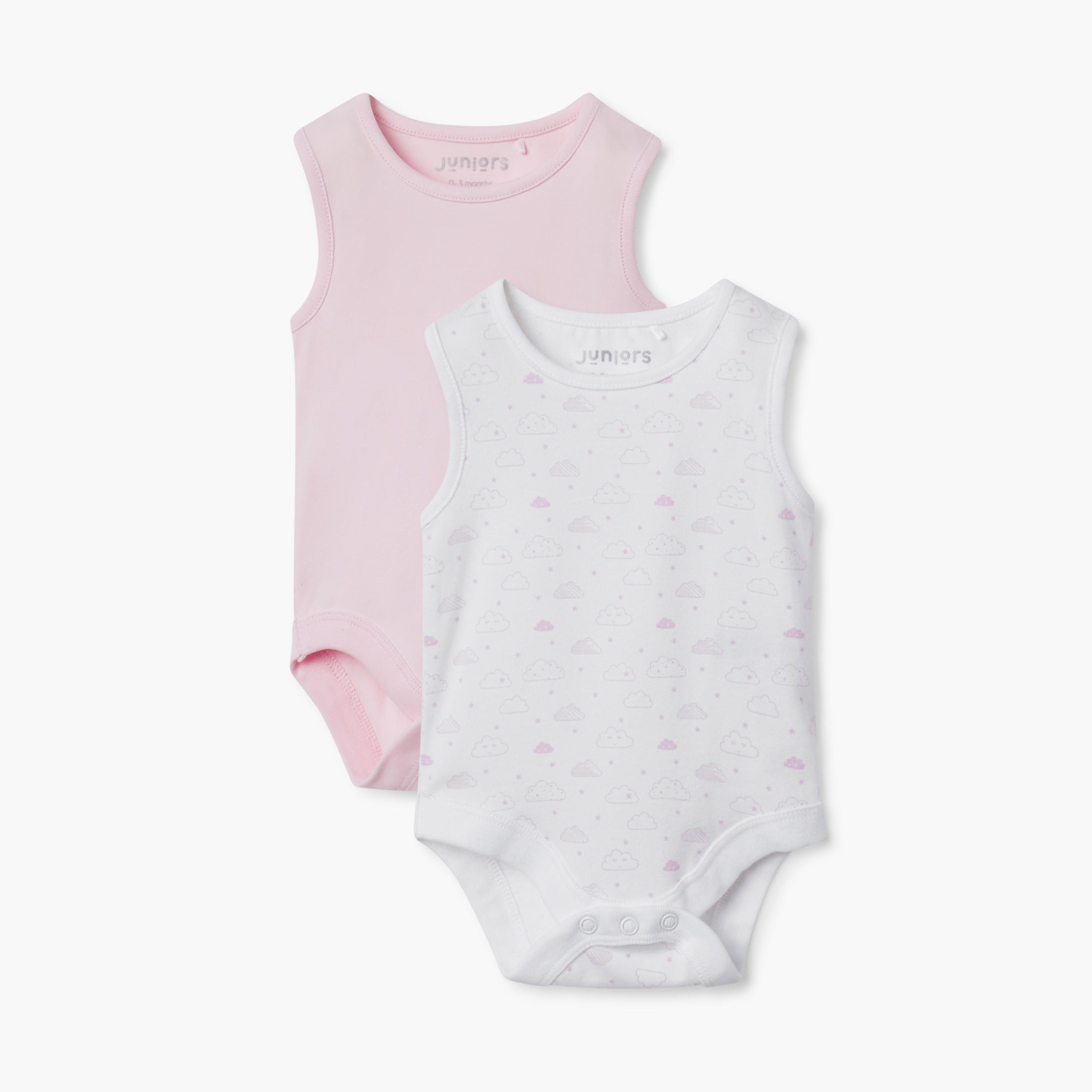 This set of two sleeveless bodysuits offers comfort and practicality for your little one. Crafted from soft, breathable cotton, these bodysuits feature convenient snap button closures for easy changing. Dress your baby in these comfortable and stylish essential bodysuits.