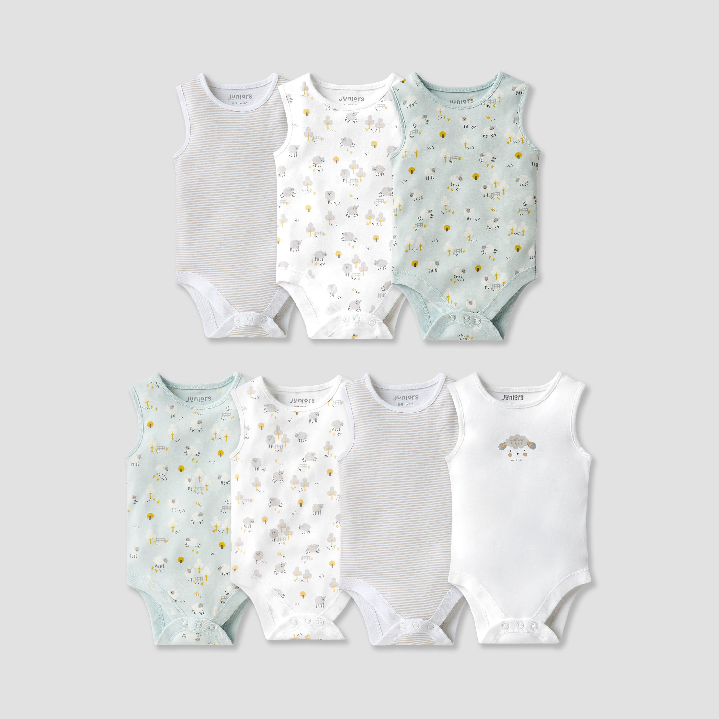 The Juniors sleeveless bodysuit set is crafted from soft cotton, ensuring comfort for your infant. Ideal for casual wear, these bodysuits feature charming designs that add a playful touch to any outfit. Designed for easy dressing, they provide convenience for parents while keeping the little one cosy and content. Perfect for everyday use, these bodysuits are a must-have for your baby's essentials.