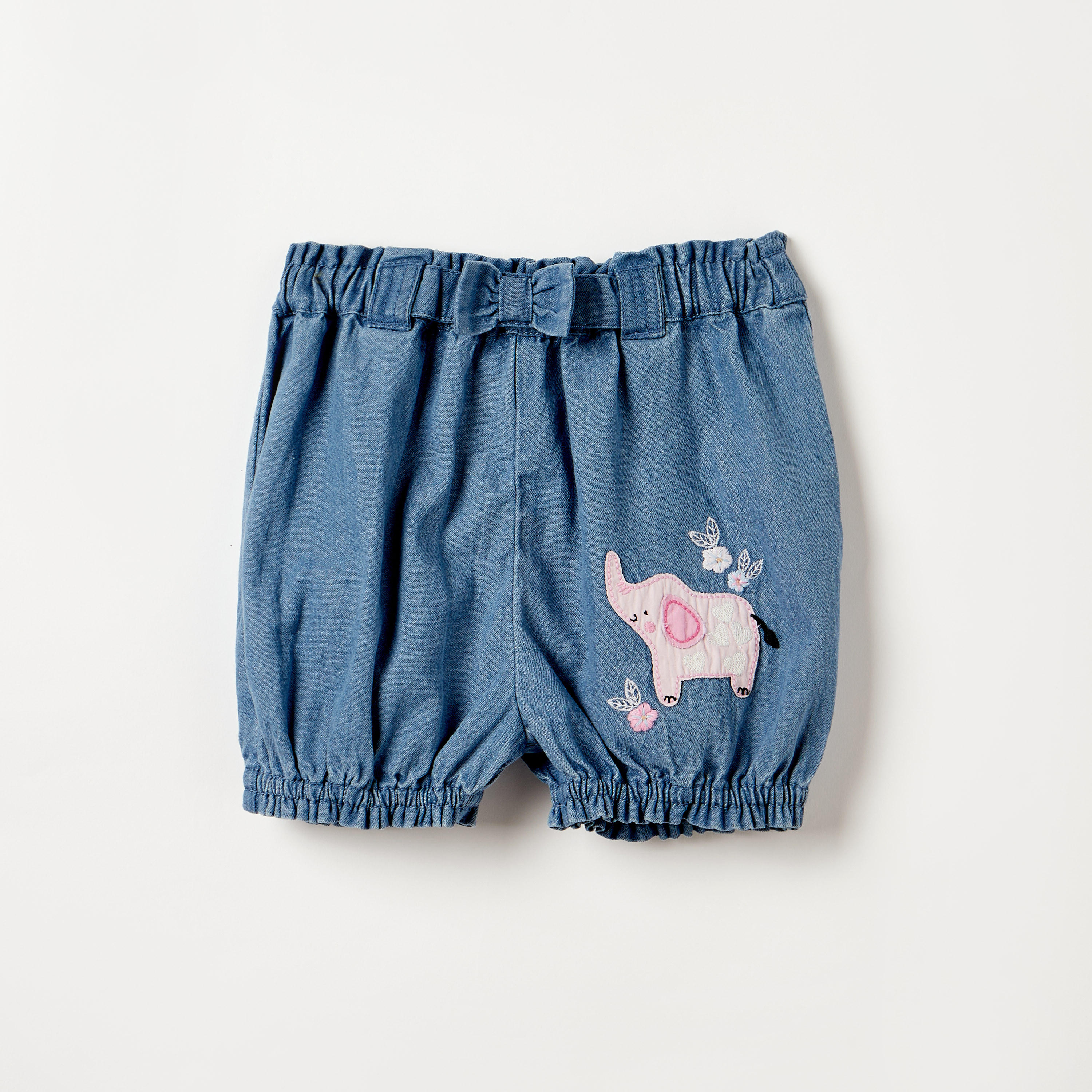 Juniors Elephant Applique Denim Shorts with Bow Detail