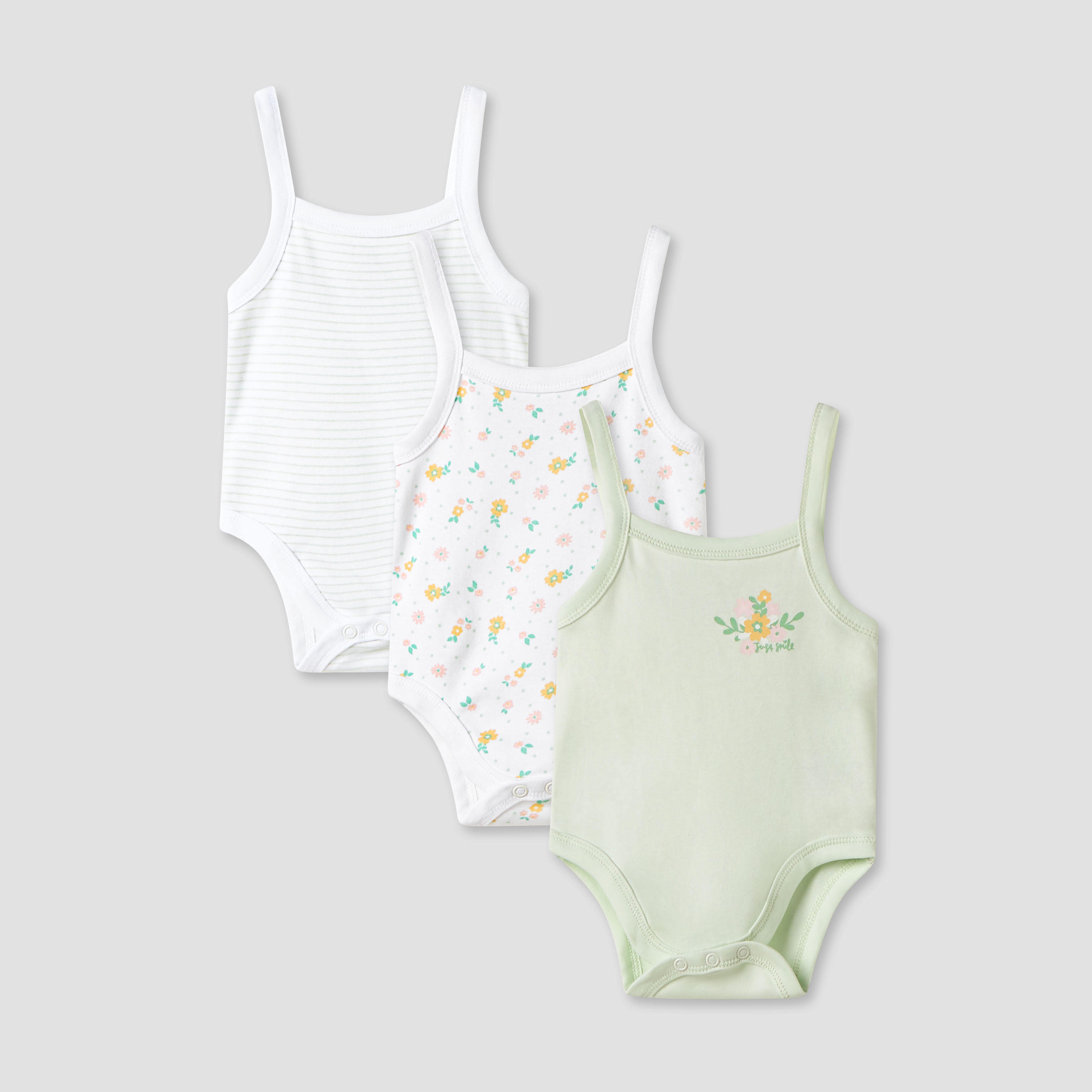 This set of three strappy printed bodysuits is perfect for warm days. Featuring adorable prints, each piece brings charm and style to baby basics. Crafted from soft, breathable cotton, they keep little ones cool and comfortable. Snap-button fastenings ensure hassle-free changes. A versatile set that pairs well with shorts, leggings, or worn on its own.
