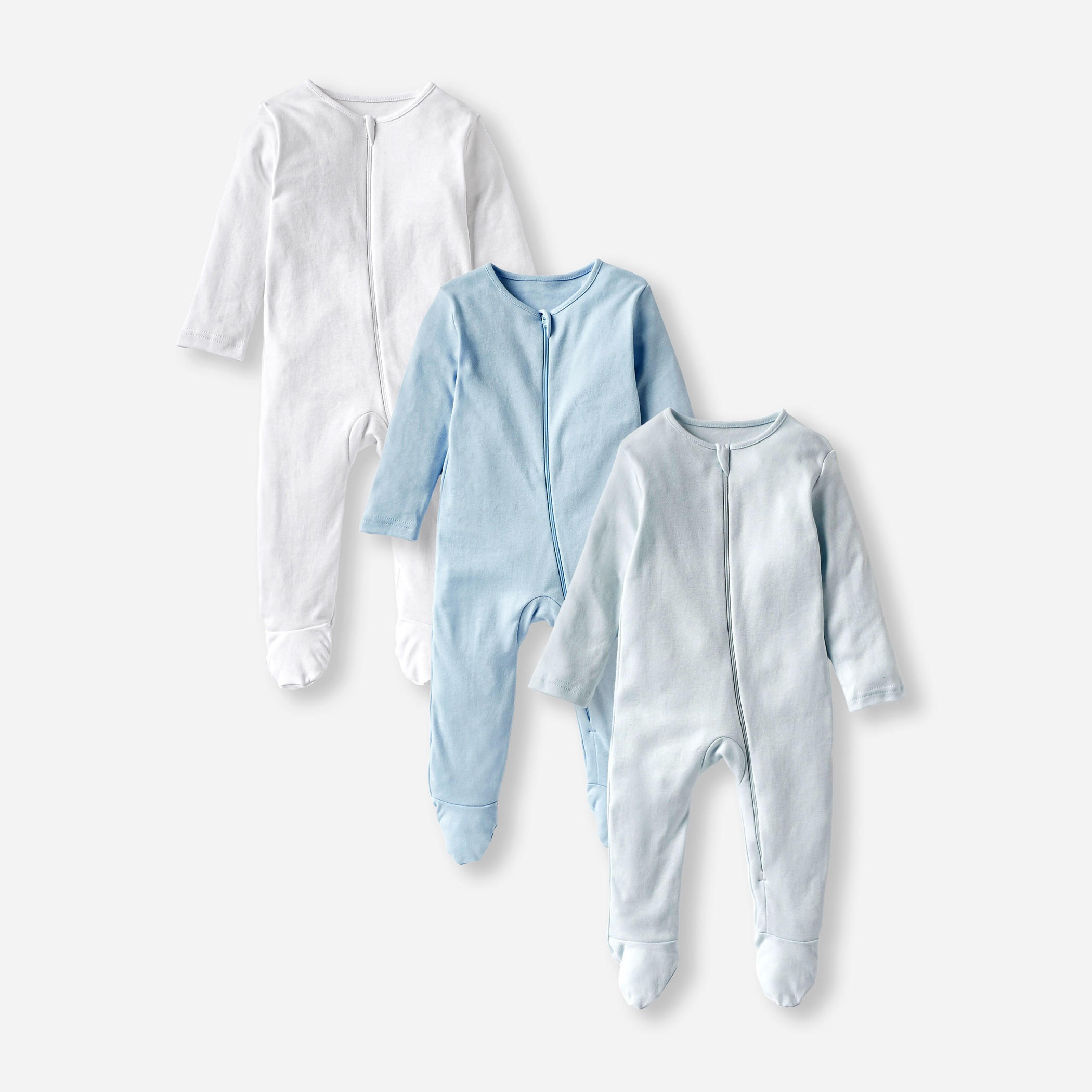Juniors Solid Closed Feet Sleepsuit with Zip Closure - Set of 3