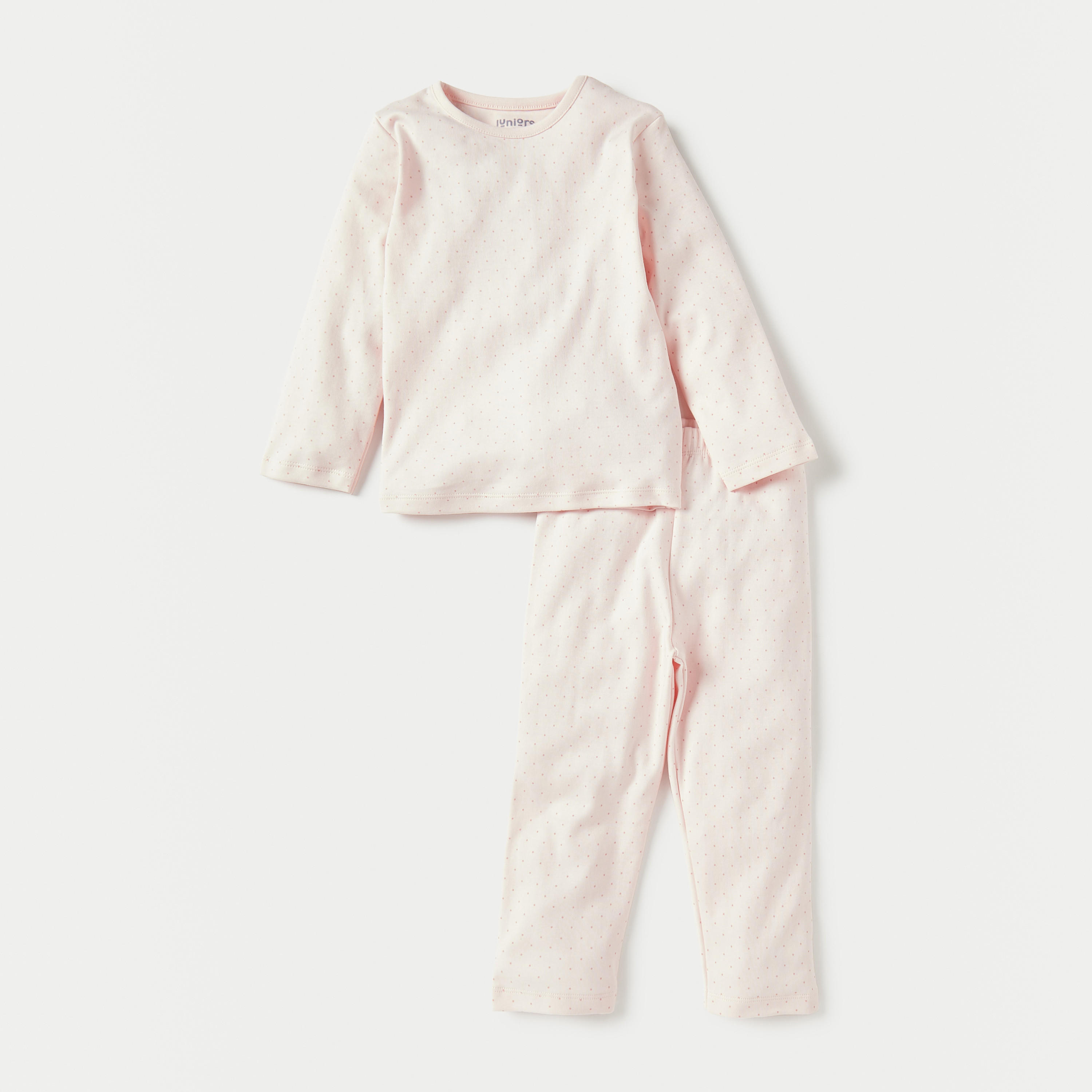 Juniors All-Over Polka Dot Print Cotton T-shirt and Pyjama Set
