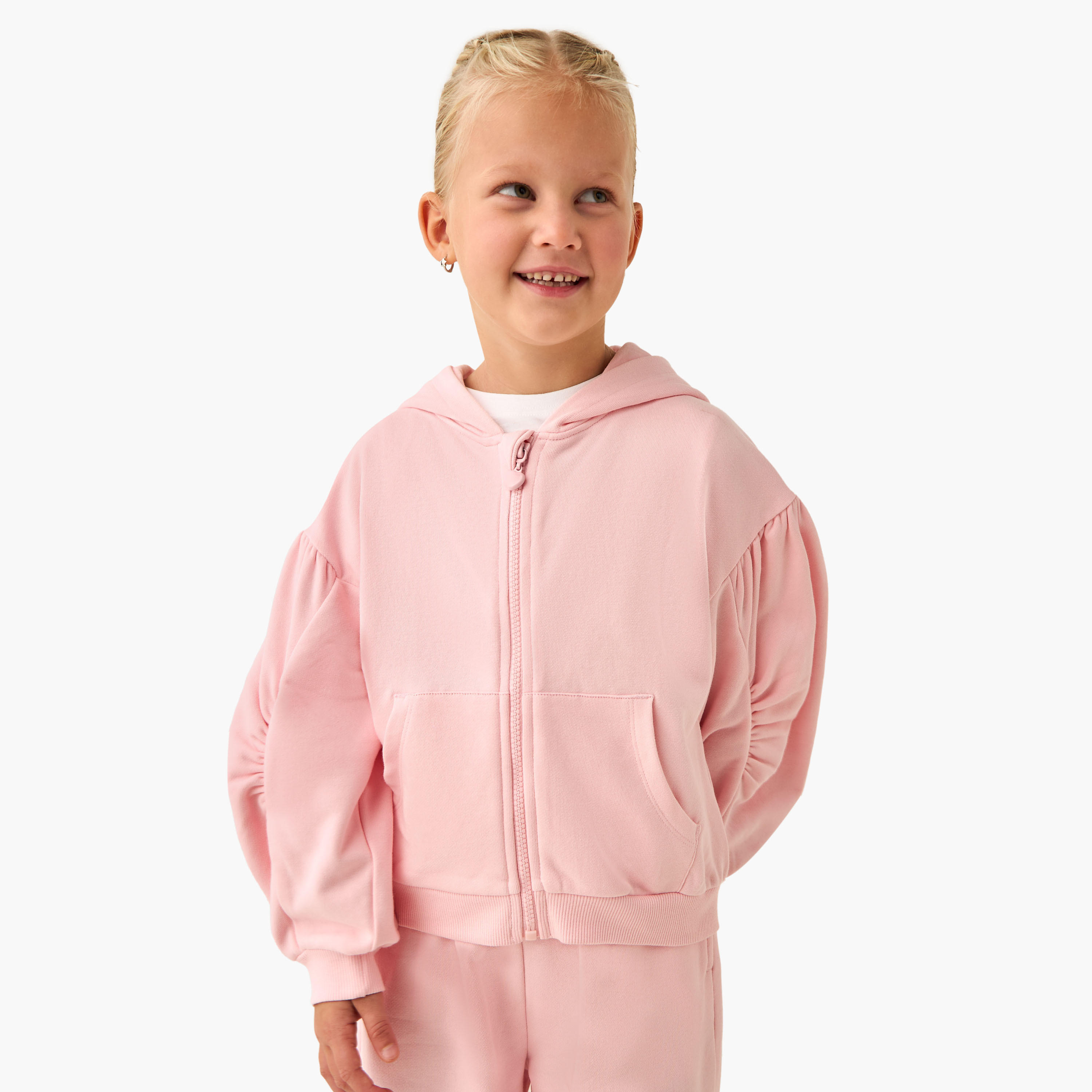 Juniors Solid Zip Through Hoodie with Long Sleeves