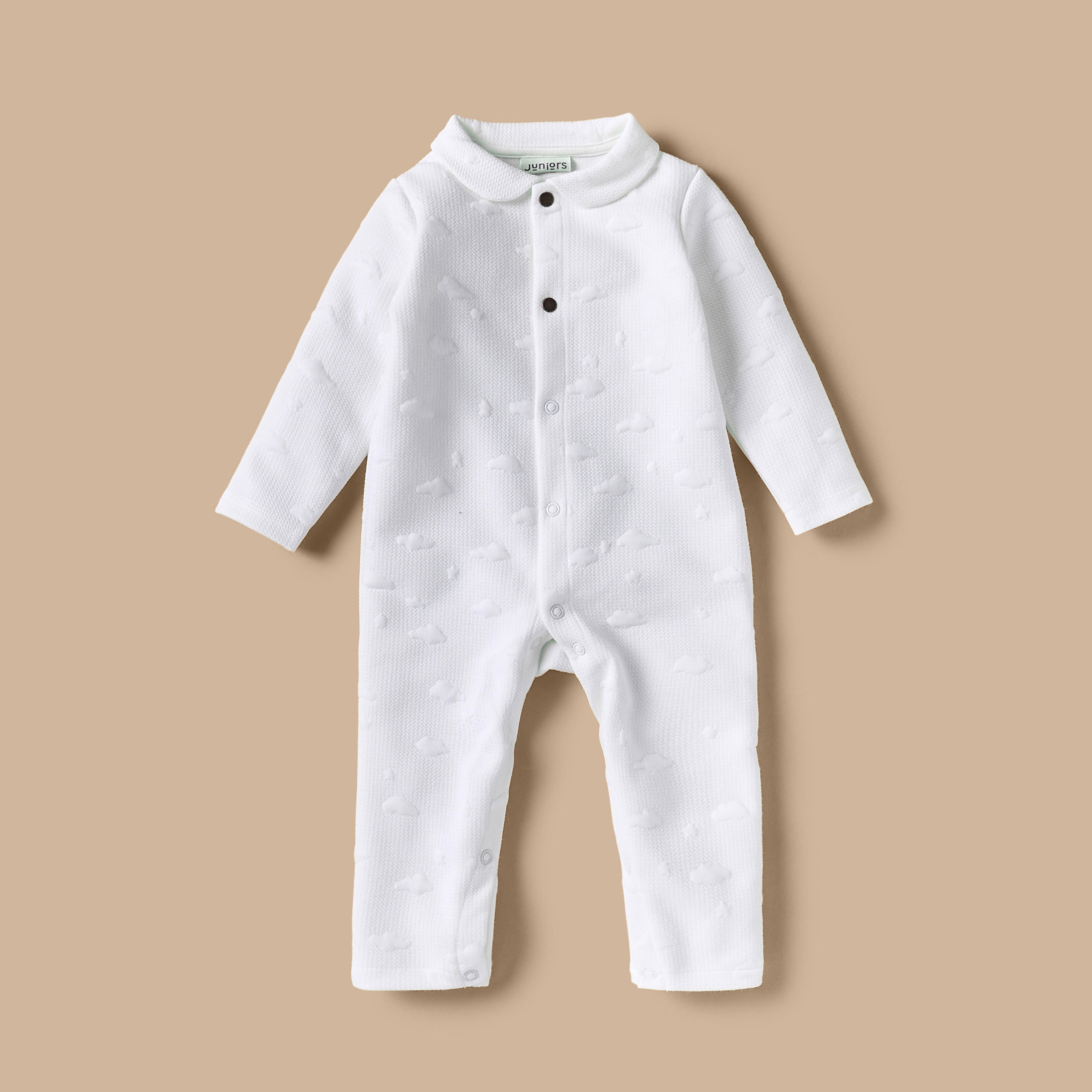 Juniors Cloud Textured Jacquard Sleepsuit with Long Sleeves and Collar