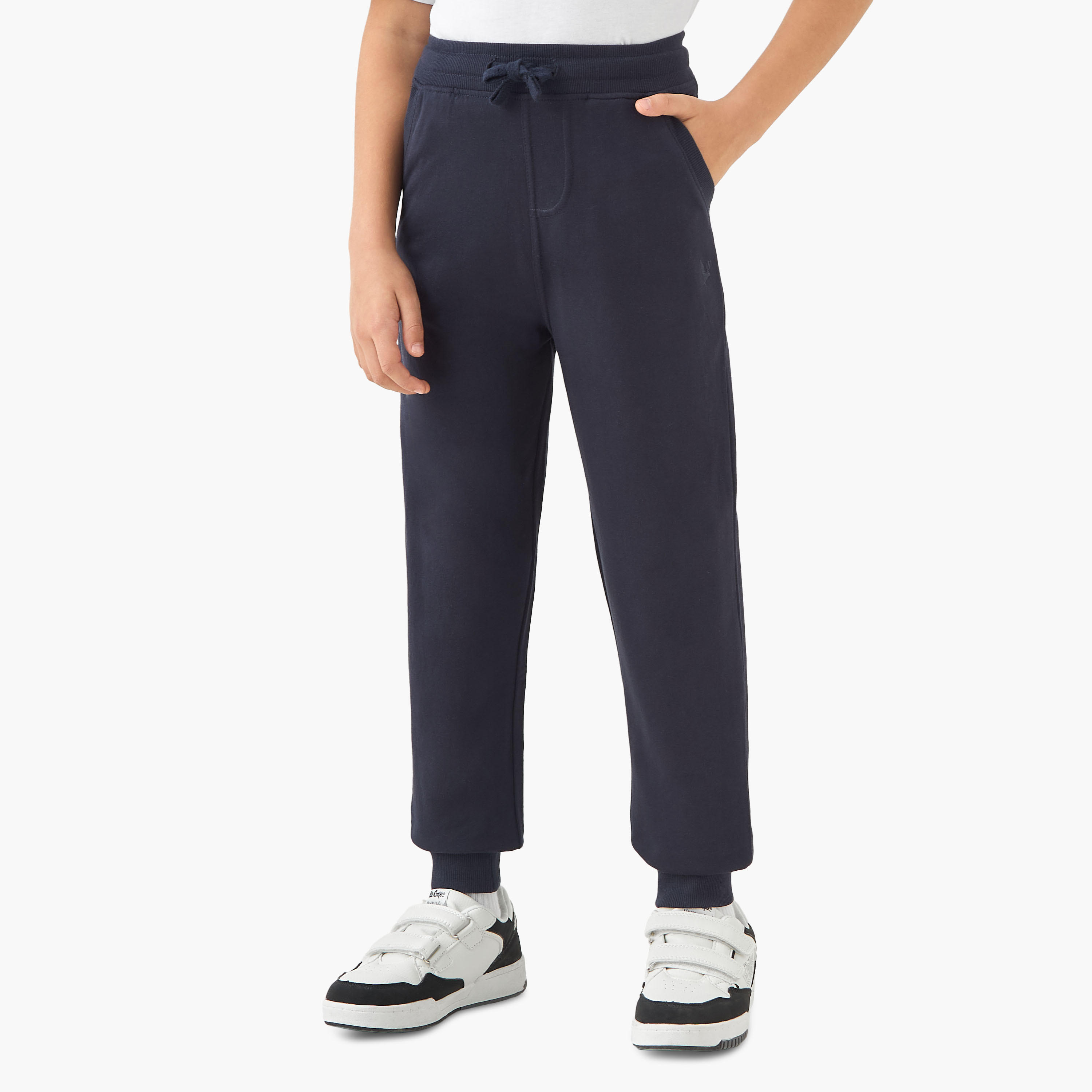 Add this classy pair of jog pants to your boy's basic bottom wear collection and pep it up with ease. Crafted from a soft fabric, this pair features pockets on the front and back that add to its utiltiy. The cuffed hem provides a tapered fit.