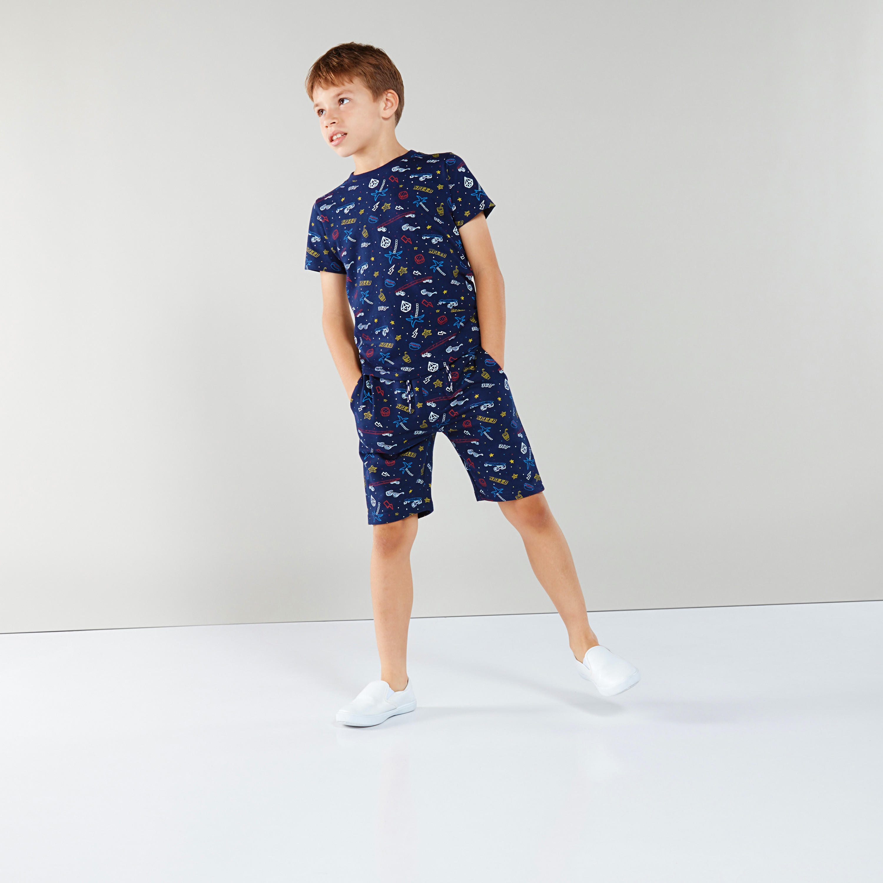 Make sure your champ looks trendy and adorable by getting him this pair of shorts that features a dainty print all over. The pockets add to the style and utility quotient of these shorts while the drawstring promises a comfortable wear throughout.