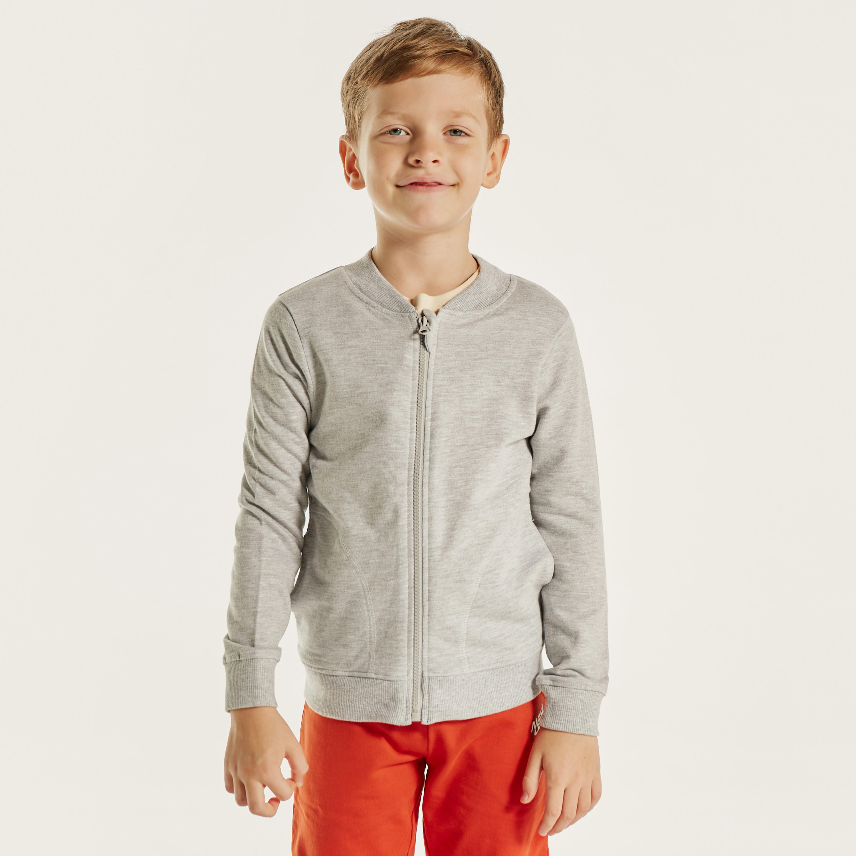 Juniors Solid Zip Through Jacket with High Neck and Long Sleeves