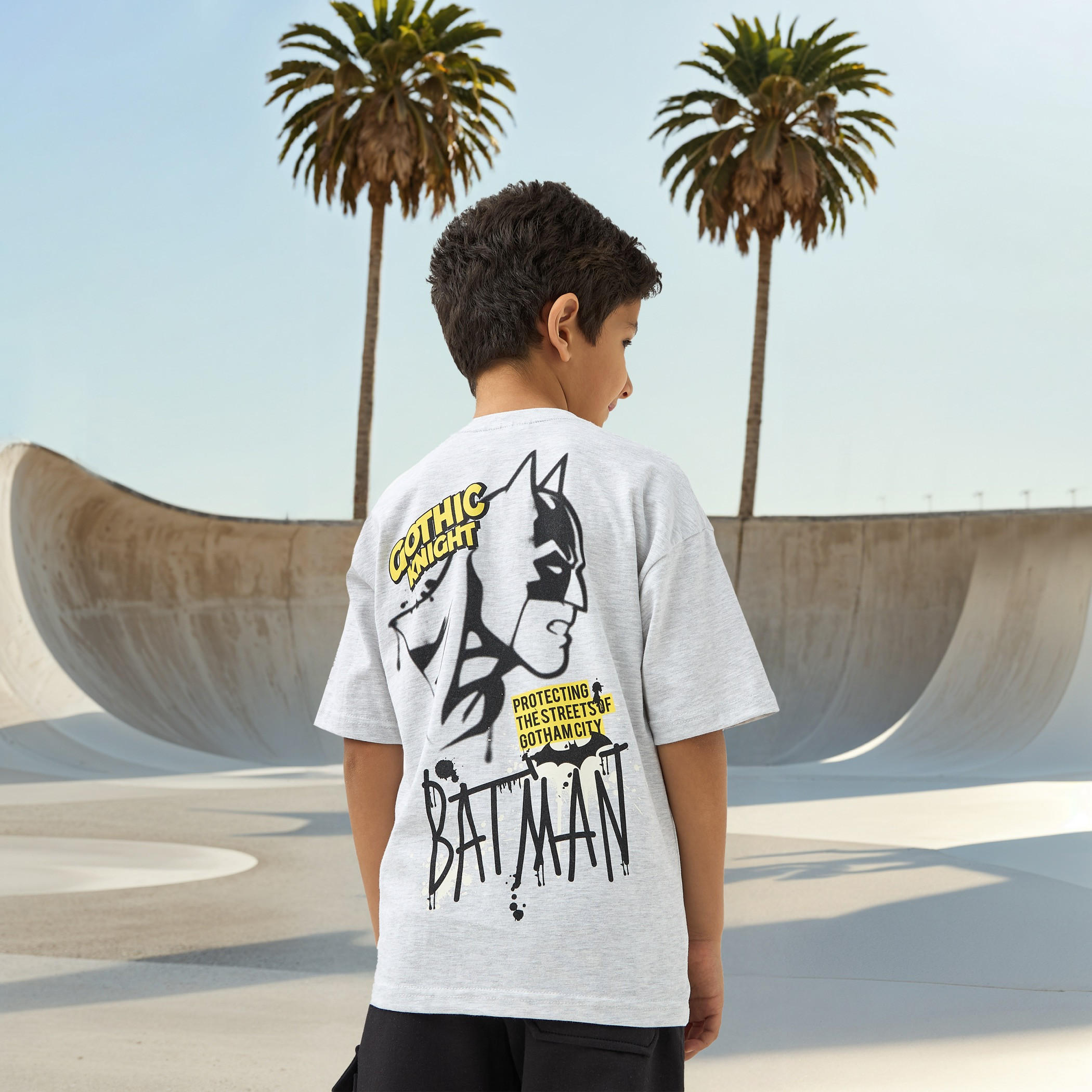Batman Print Crew Neck T-shirt with Short Sleeves