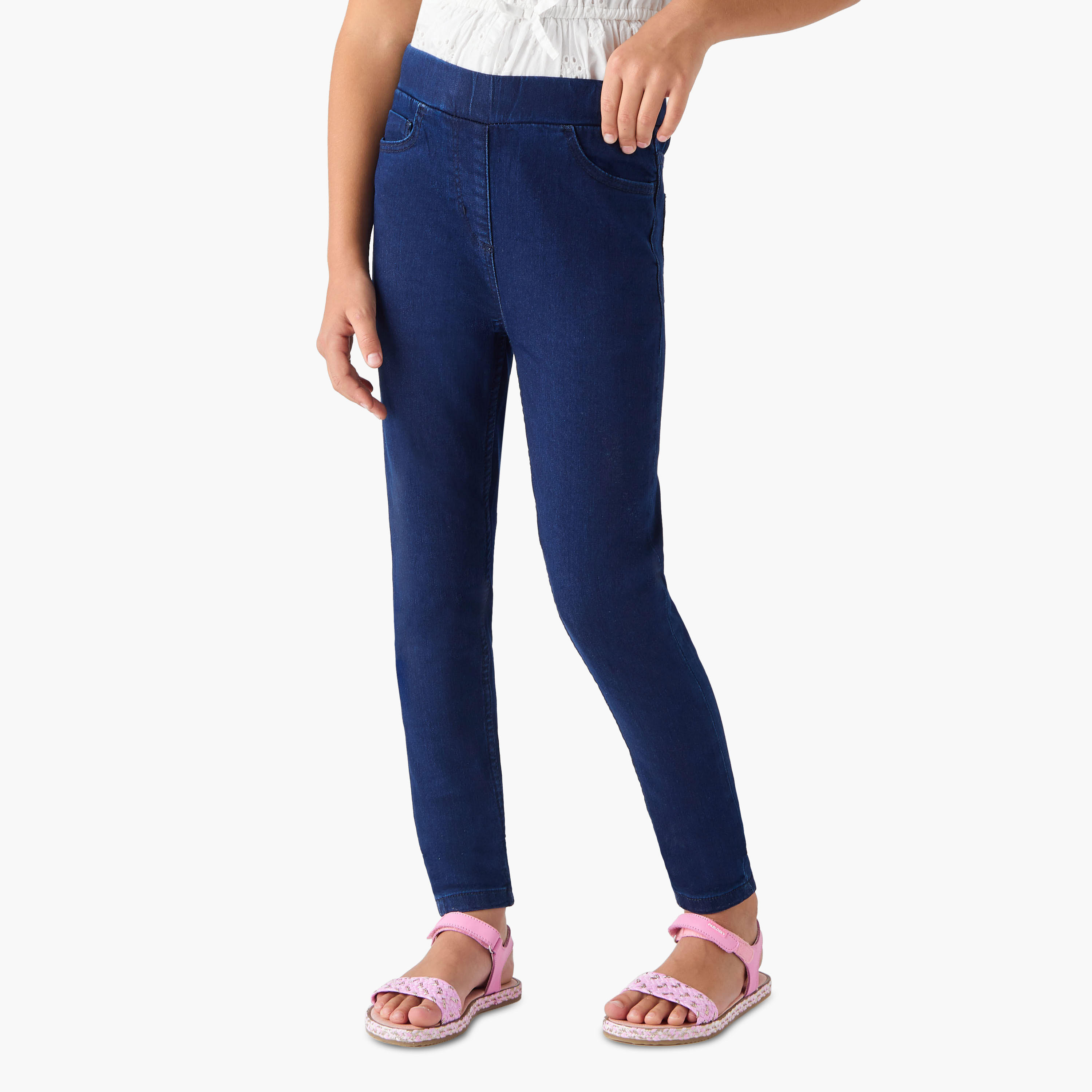 With 5-pocket styling and an elasticated waistband, these solid jeggings are a versatile pick for your girl's closet. Tailored from a cotton blend, this durable pair is easy to slip on and comfy to wear. These casual jeggings can be styled with any printed top for a complete look.