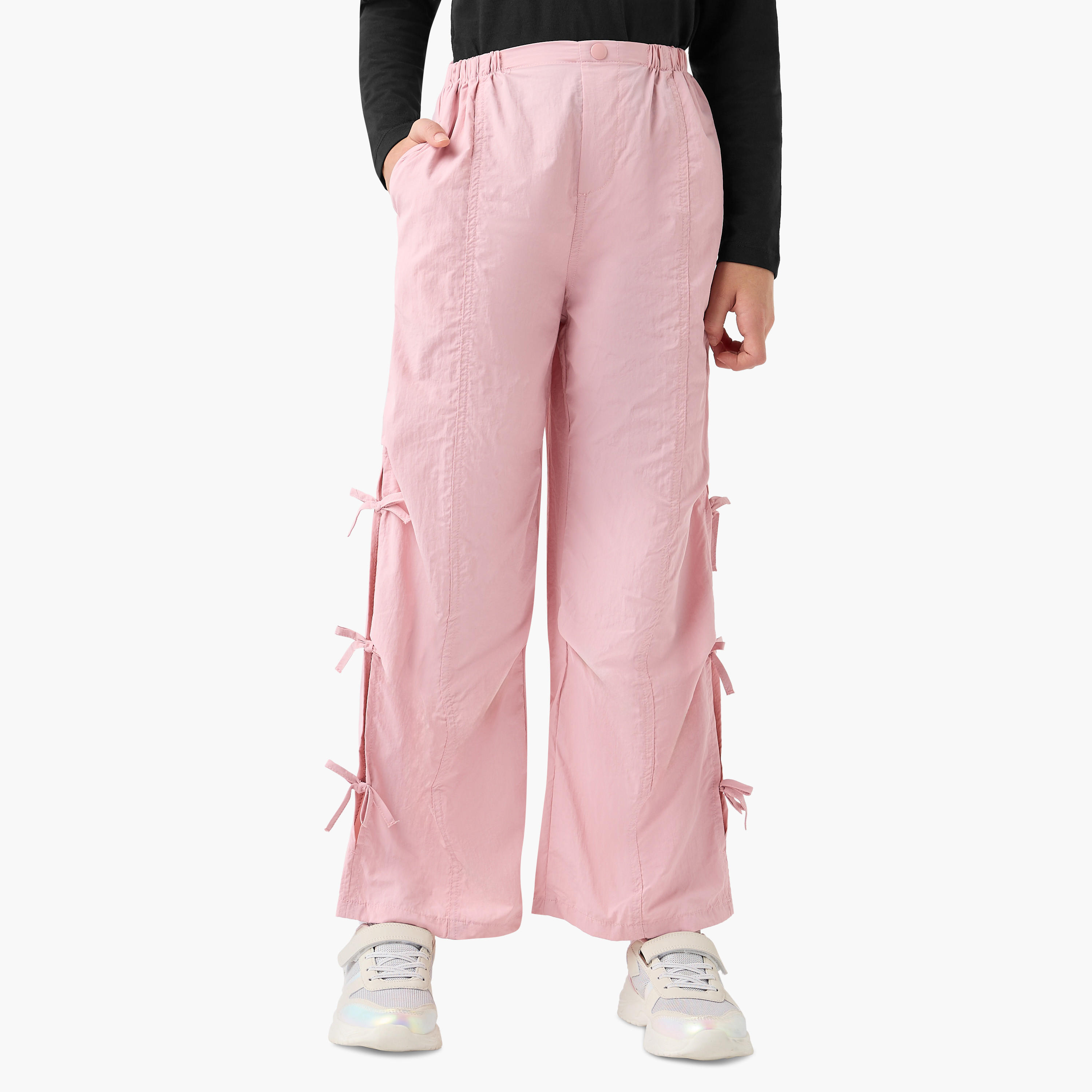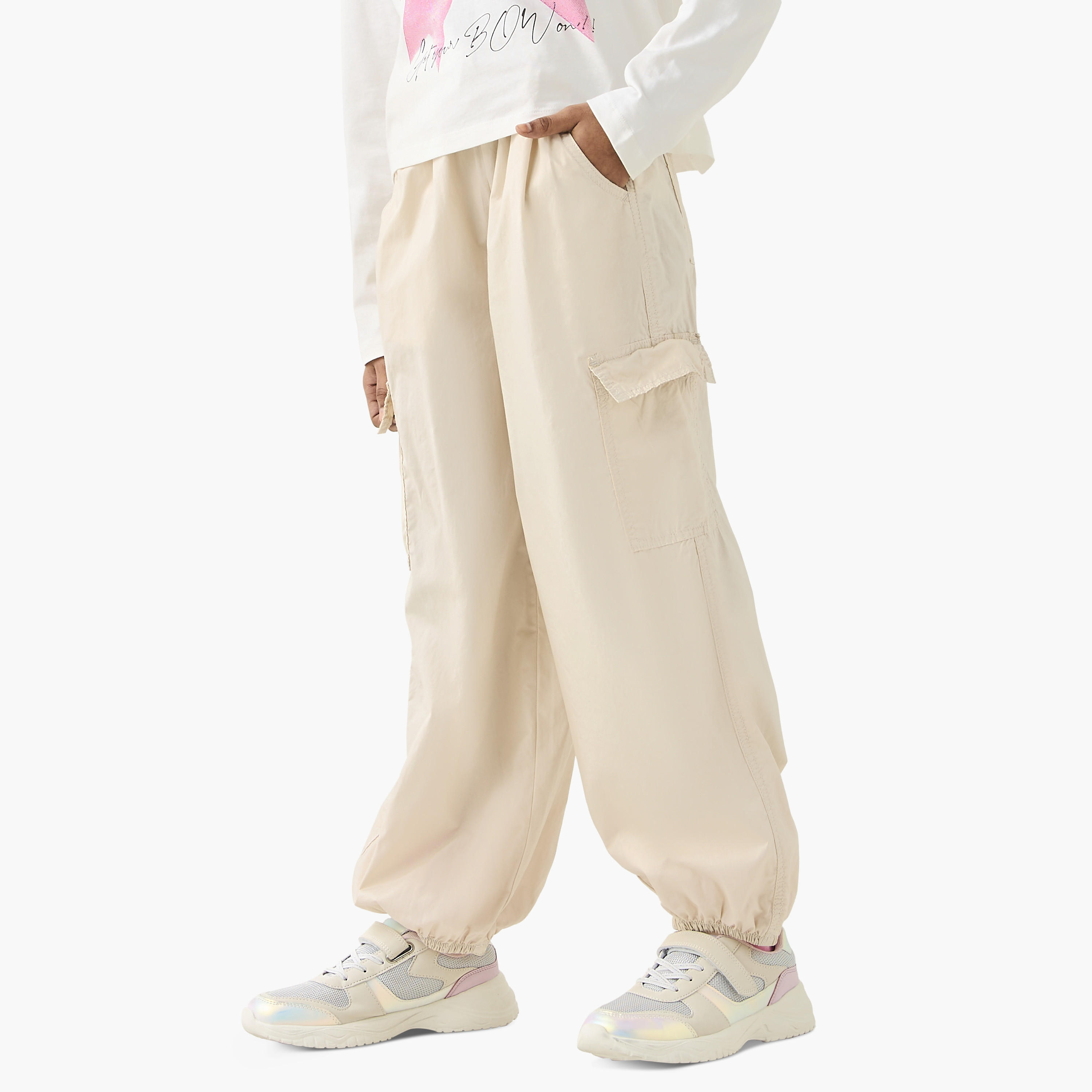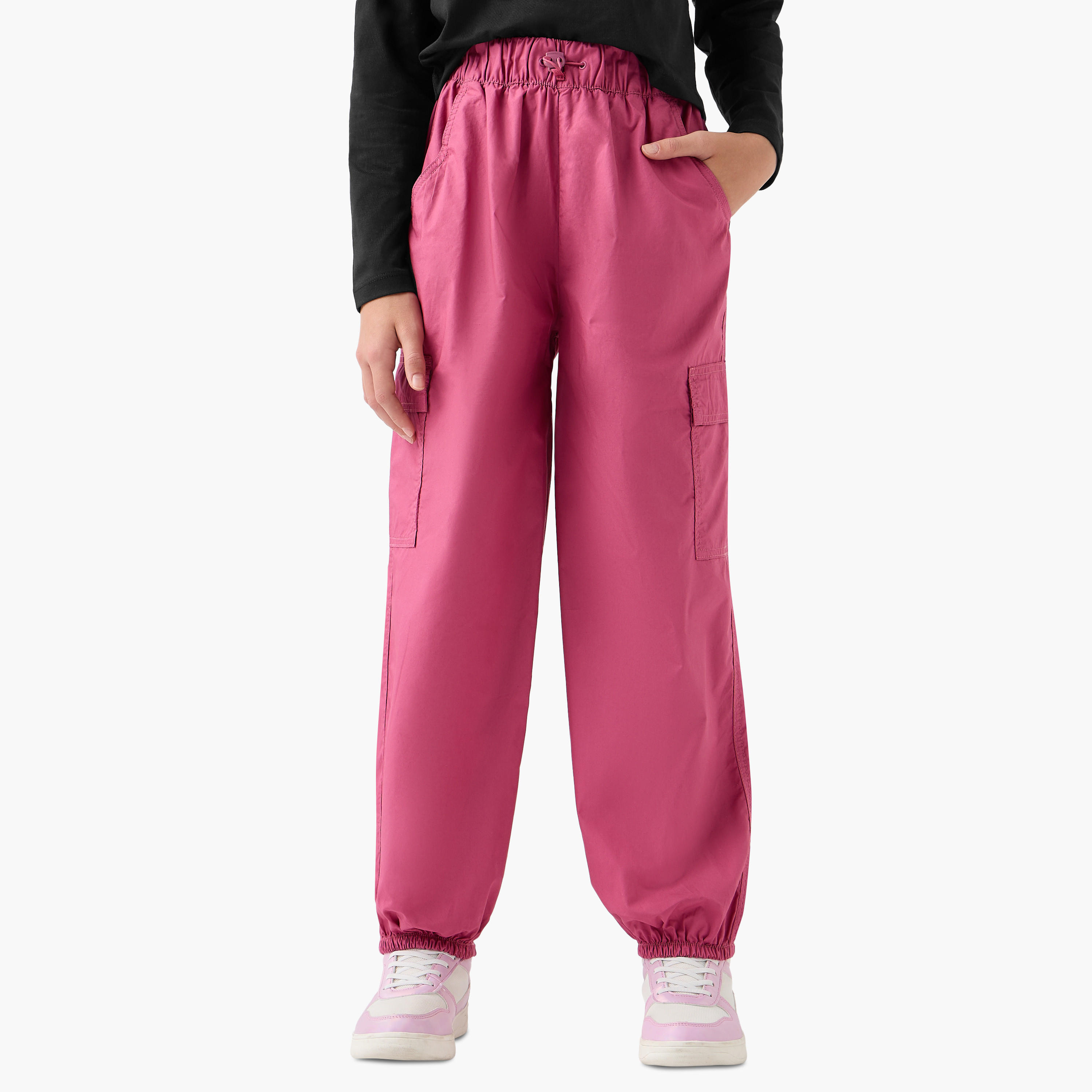 Juniors Solid Cargo Pants with Cord Lock Closure and Pockets