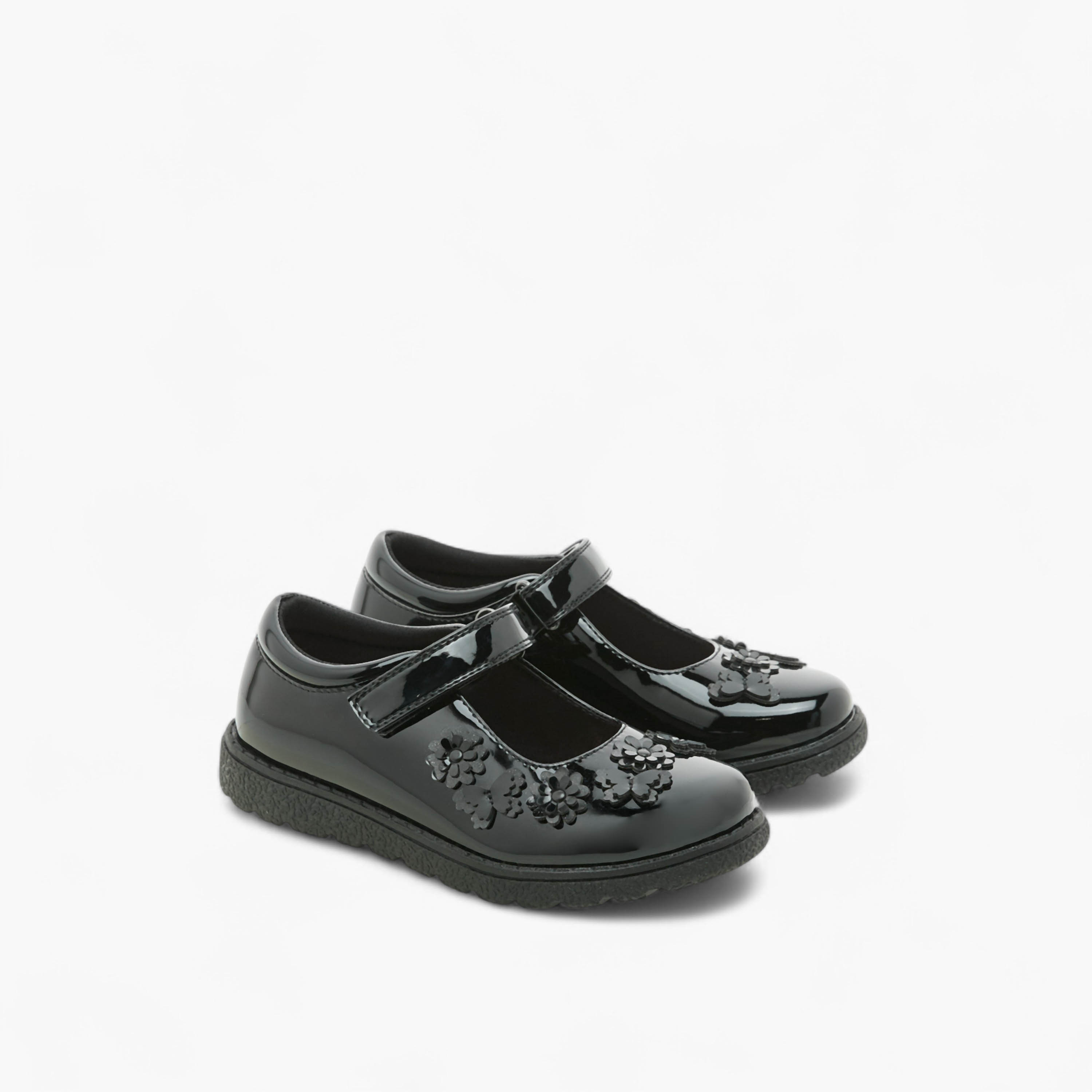 Juniors Flower Applique School Shoes with Hook and Loop Closure