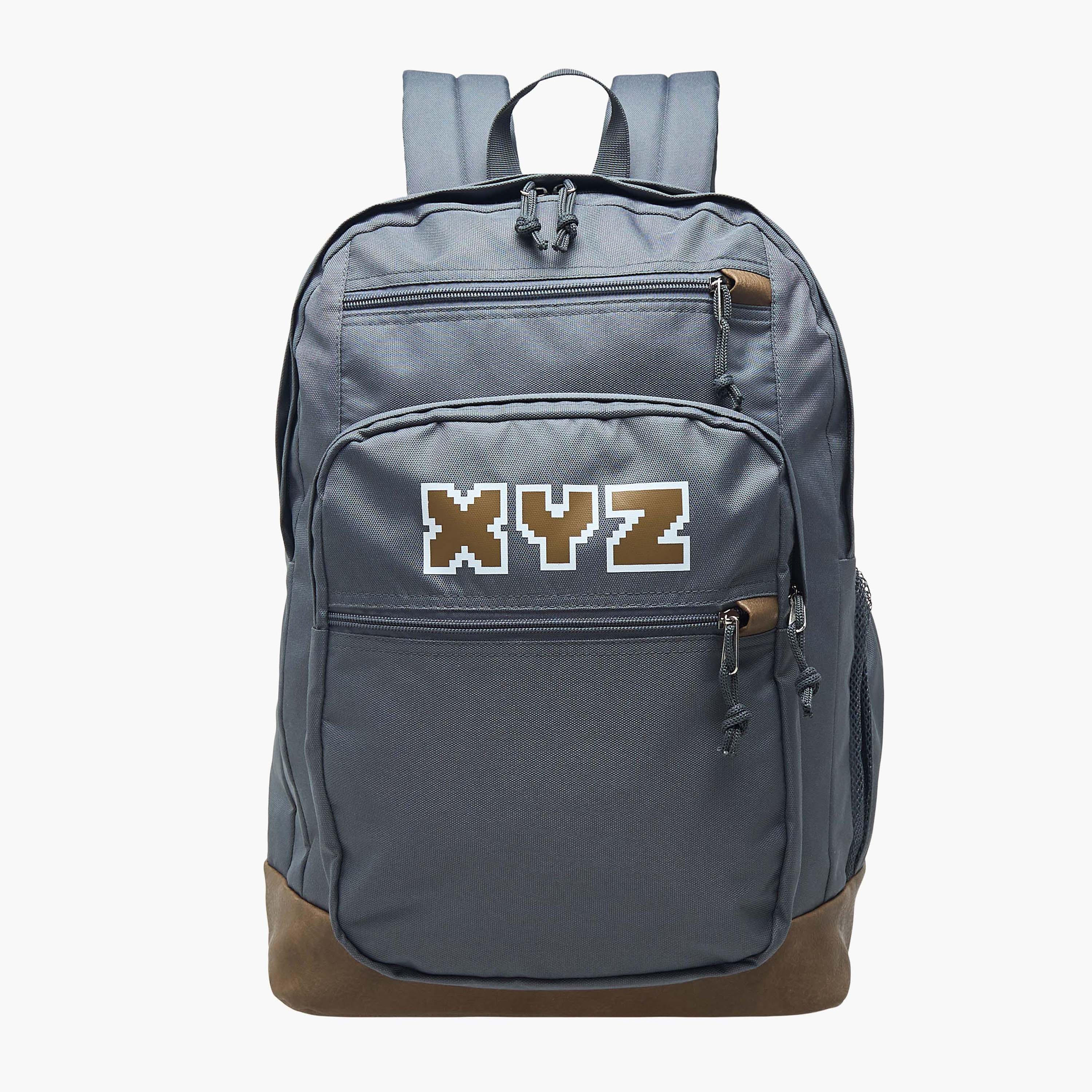 XYZ Logo Print Backpack with Adjustable Straps and Zip Closure - 18 inches
