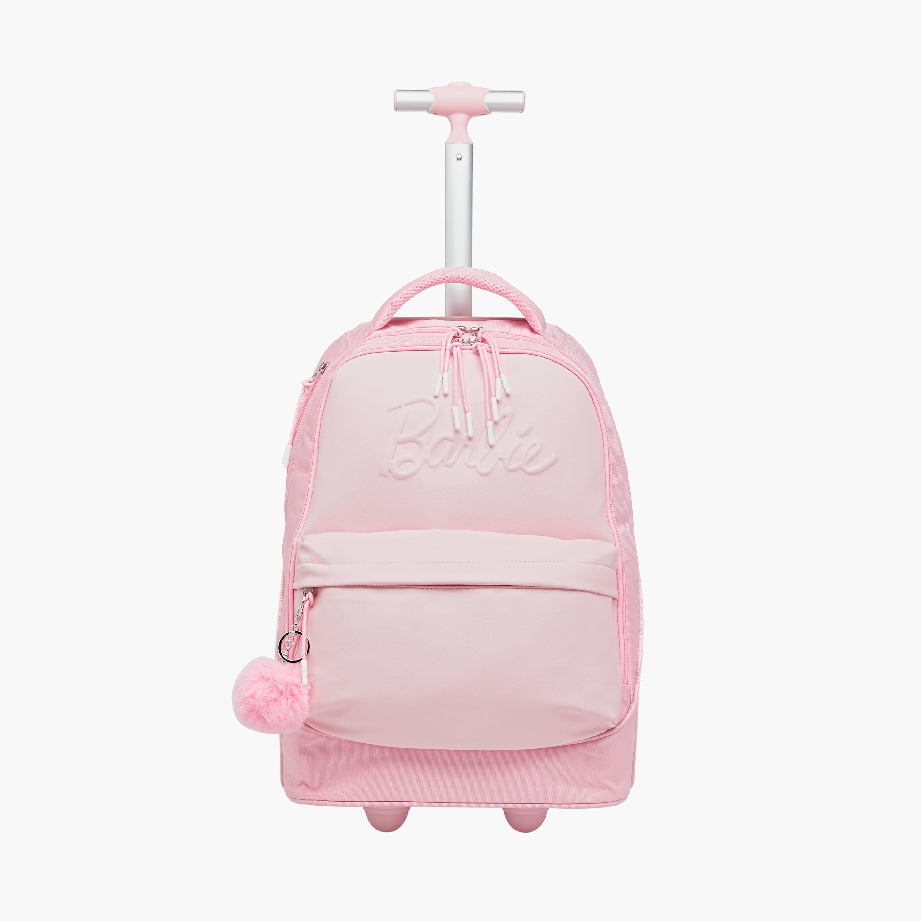 • This logo embossed Barbie trolley bag is perfect for school, combining style and practicality with a delightful character design.