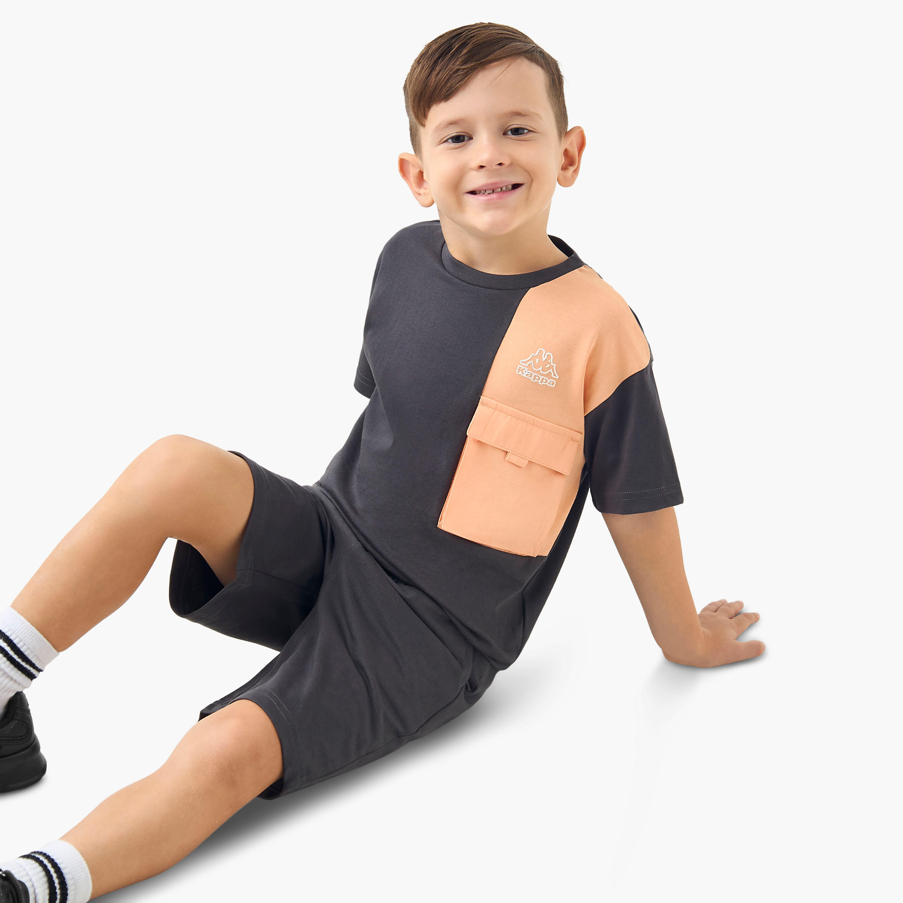 Kappa Panelled Crew Neck T-shirt and Elasticated Shorts Set