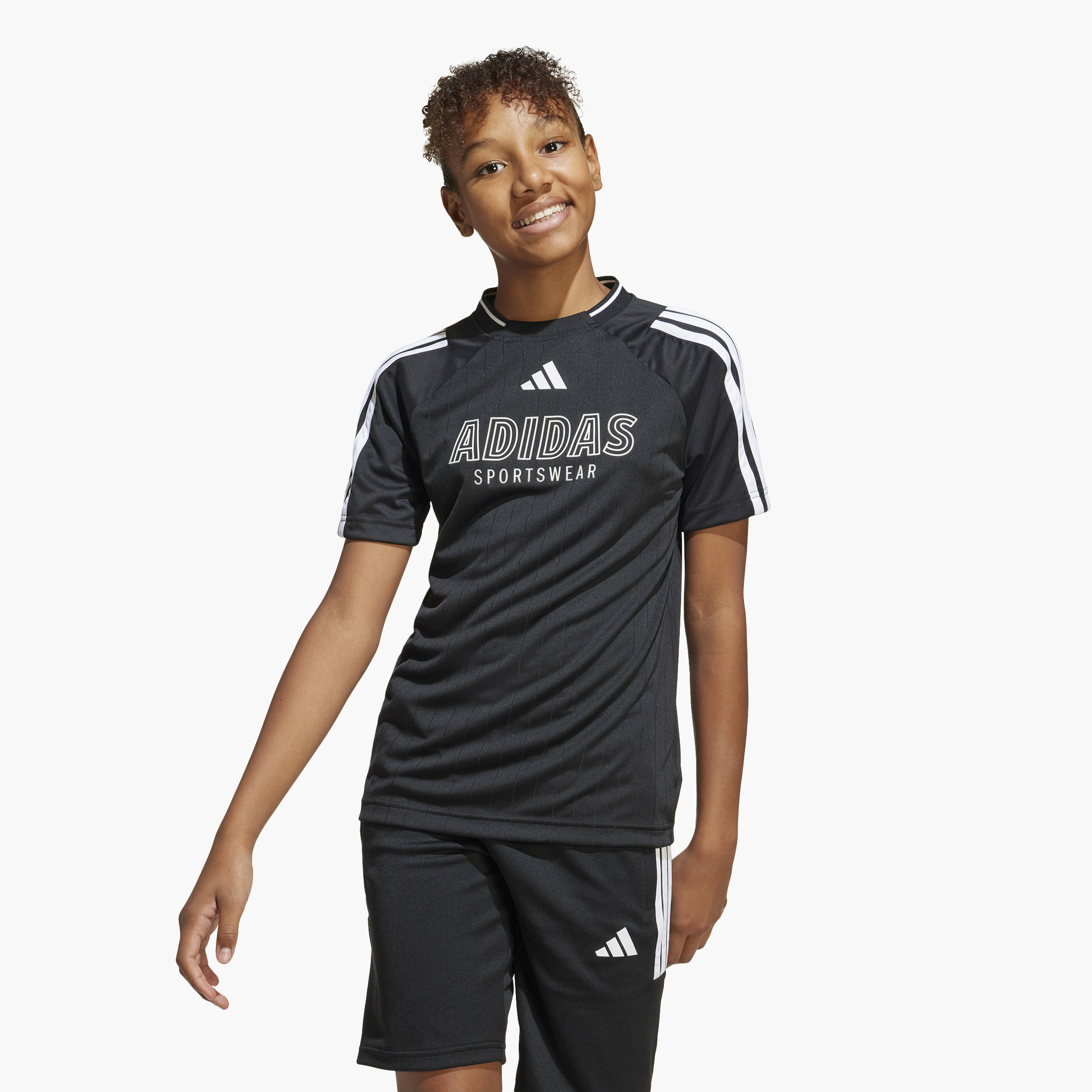 Elevate your young one's casual wardrobe with this stylish striped raglan sleeve T-shirt. This comfortable tee features a distinctive ribbed crew neck and iconic three-stripe detailing on the short sleeves, ensuring a sporty yet fashionable look. Crafted for everyday wear, this boys' T-shirt offers both comfort and durability, making it an excellent addition for active youngsters. Pair it with joggers or jeans for a complete and versatile outfit.