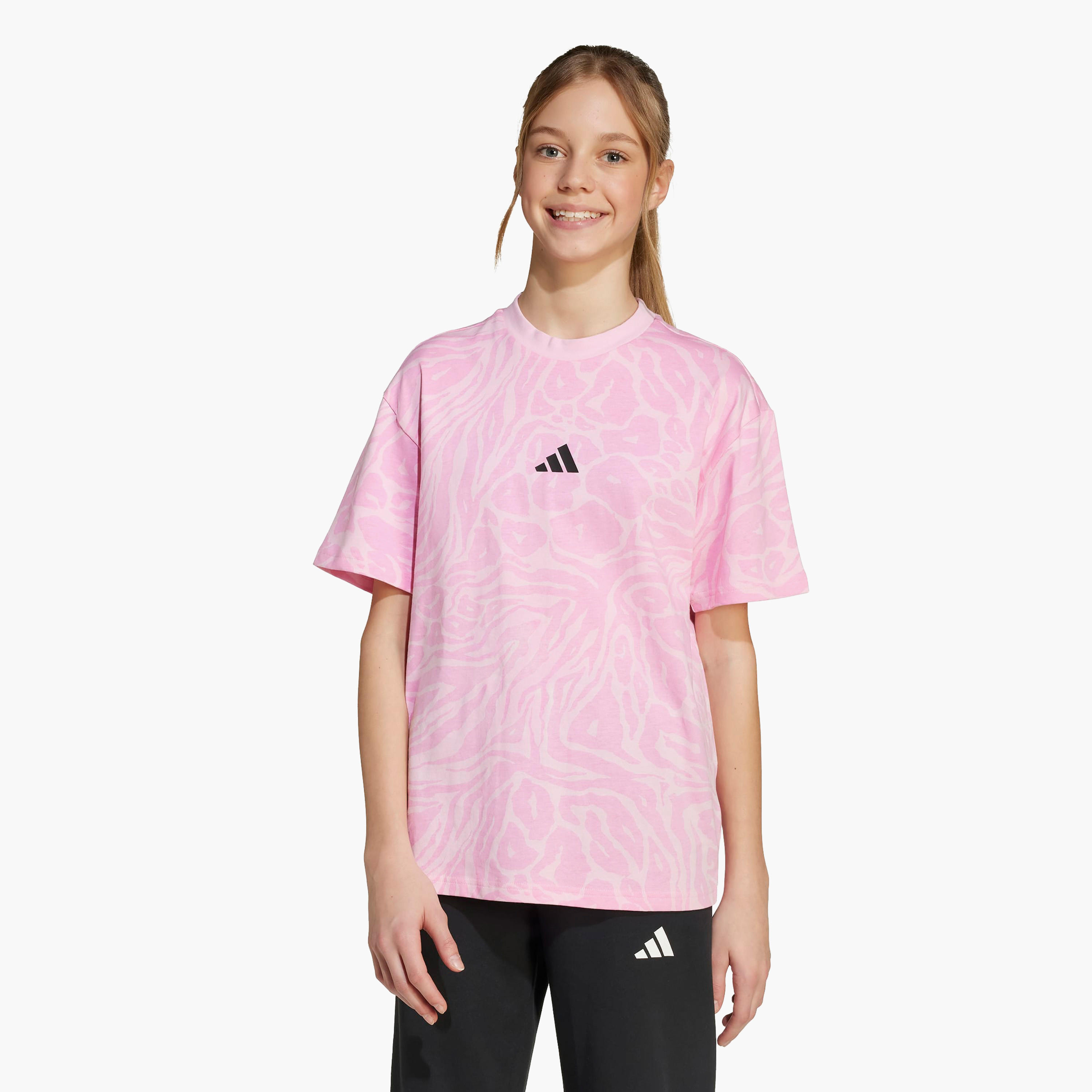 adidas Girls Crew Neck T-shirt with Animal Print - Cotton - Short Sleeves