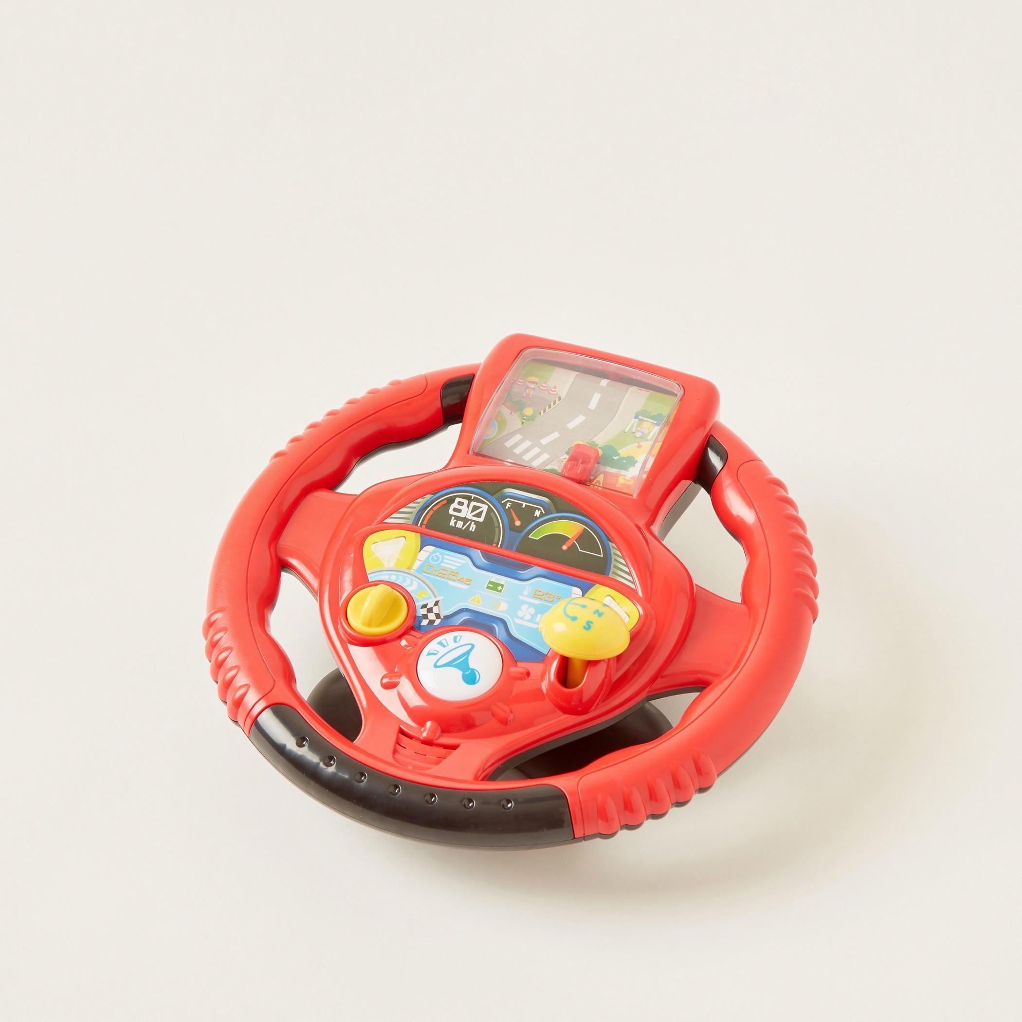 Stimulate a driving experience for your kid by getting this toy that has a display and a steering wheel. It creates realistic sounds and has a gear that adds to the design of the toy.