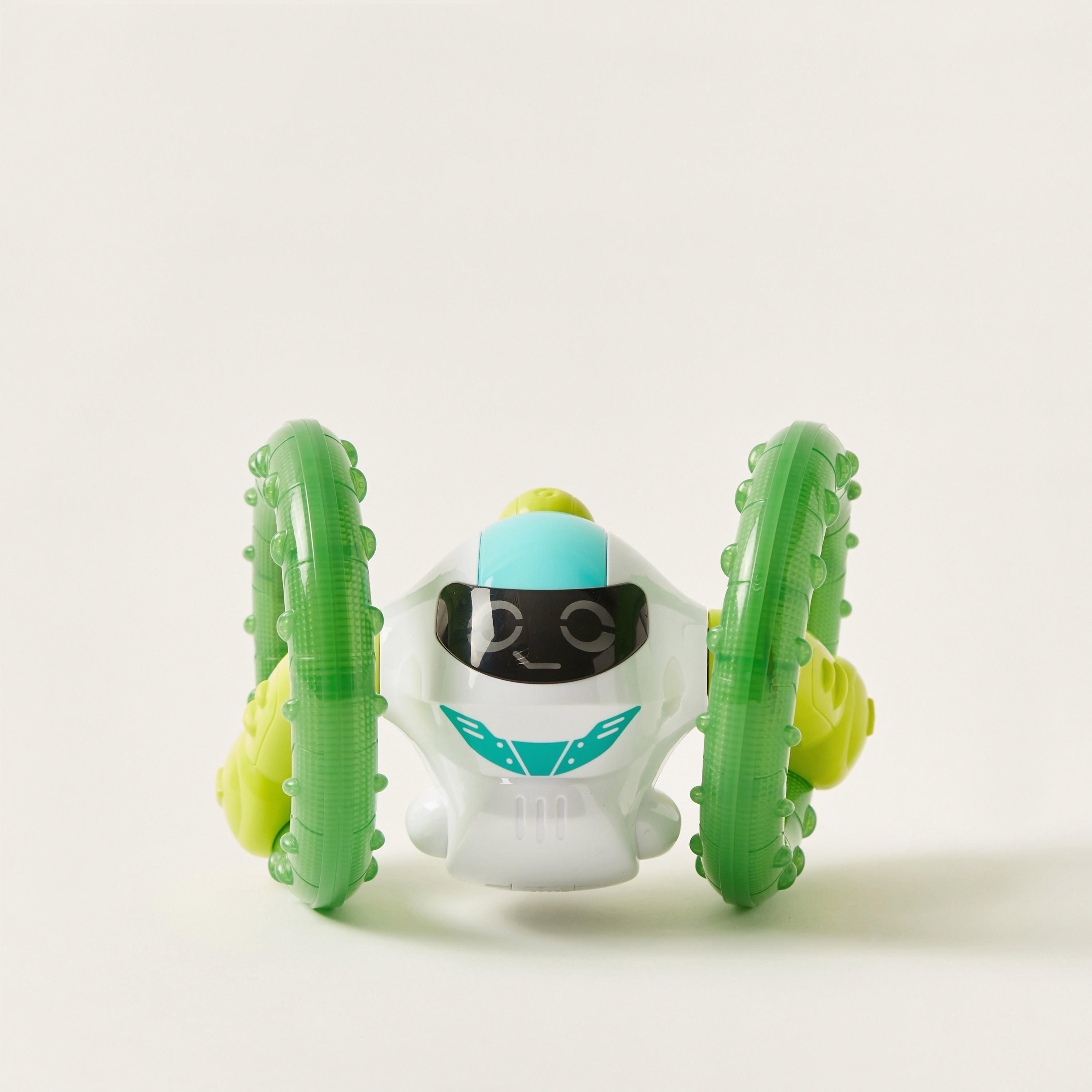 Brimming with an adorable appeal, this robot makes a fun playtime companion. The cute toy has a smiling face and two wheels on the sides that allow it to roll around. The toy is made from durable material and makes for a fine gift for a special young one.