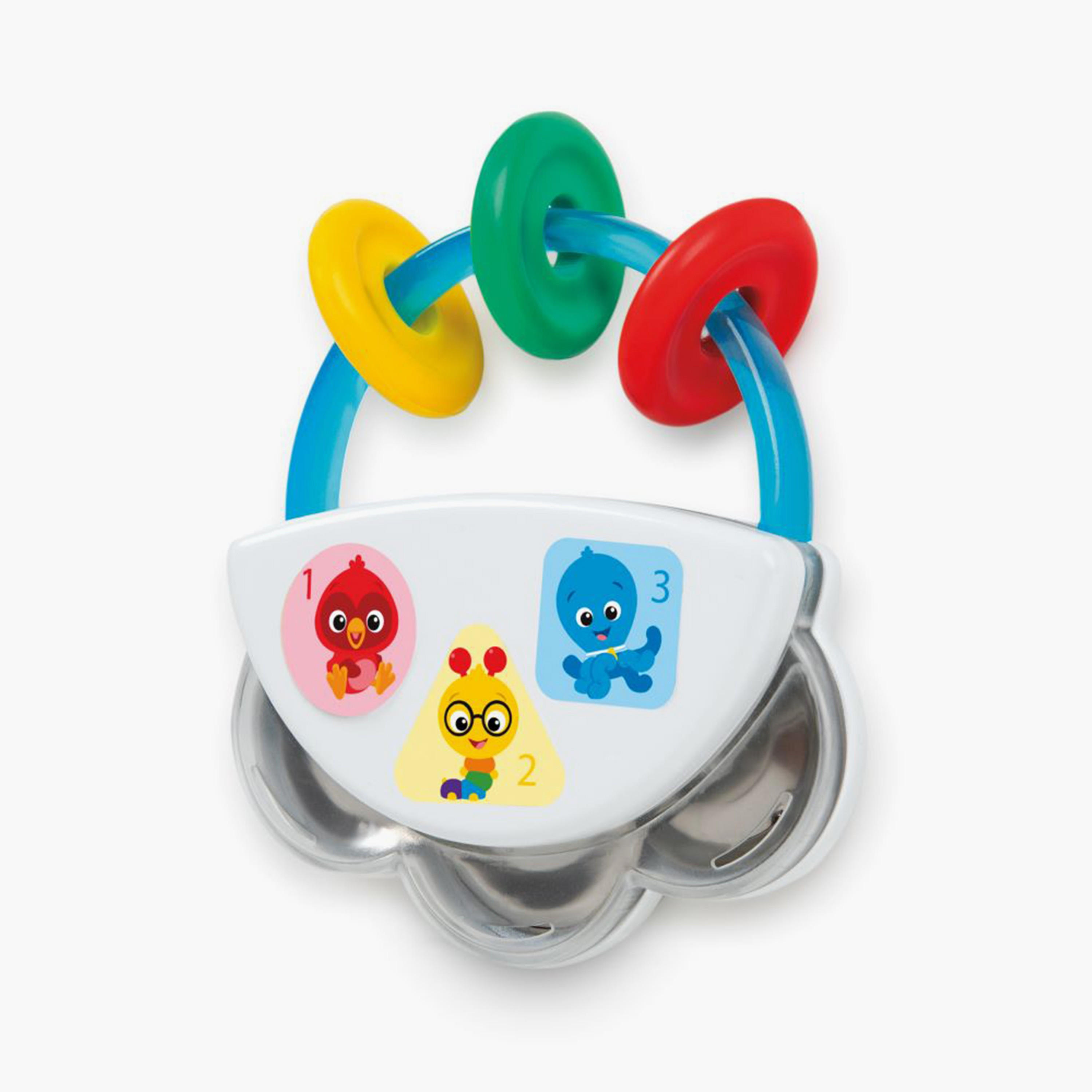Introduce your baby to the joy of music with the Baby Einstein Tiny Tambourine Musical Toy & Rattle. This compact, hand-held toy features real jingles and a sliding bead chaser, providing an engaging way for your little one to develop fine motor skills and understand cause-and-effect. It's lightweight, easy for baby to hold, and the muted jingles won't overwhelm parents' ears. Adorned with beloved Baby Einstein characters and a vibrant, BPA-free bead chaser, it's a sensory delight that's easy to clean.